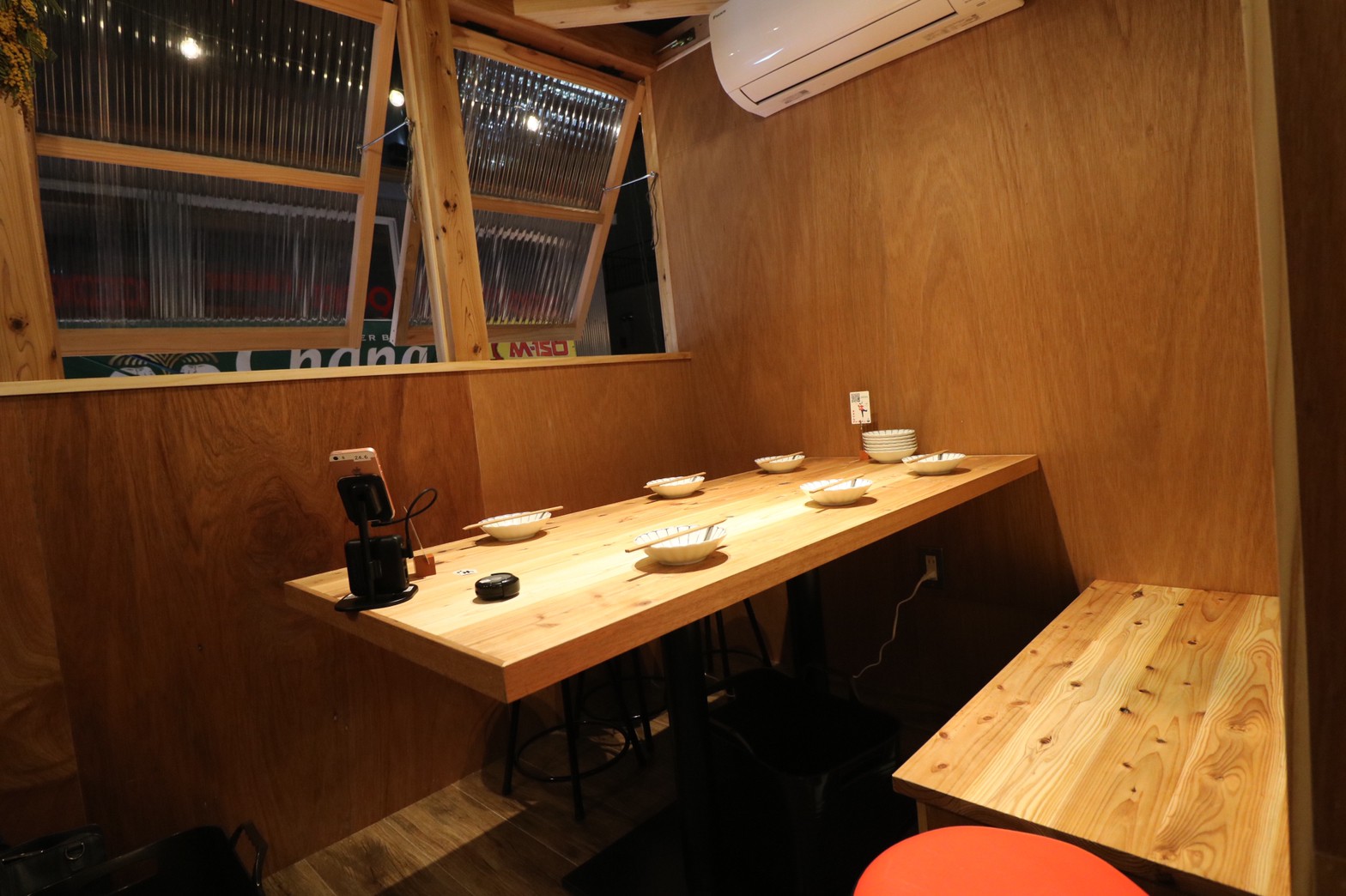 注文は席に設置されたスマホのテレビ電話で出来ます。