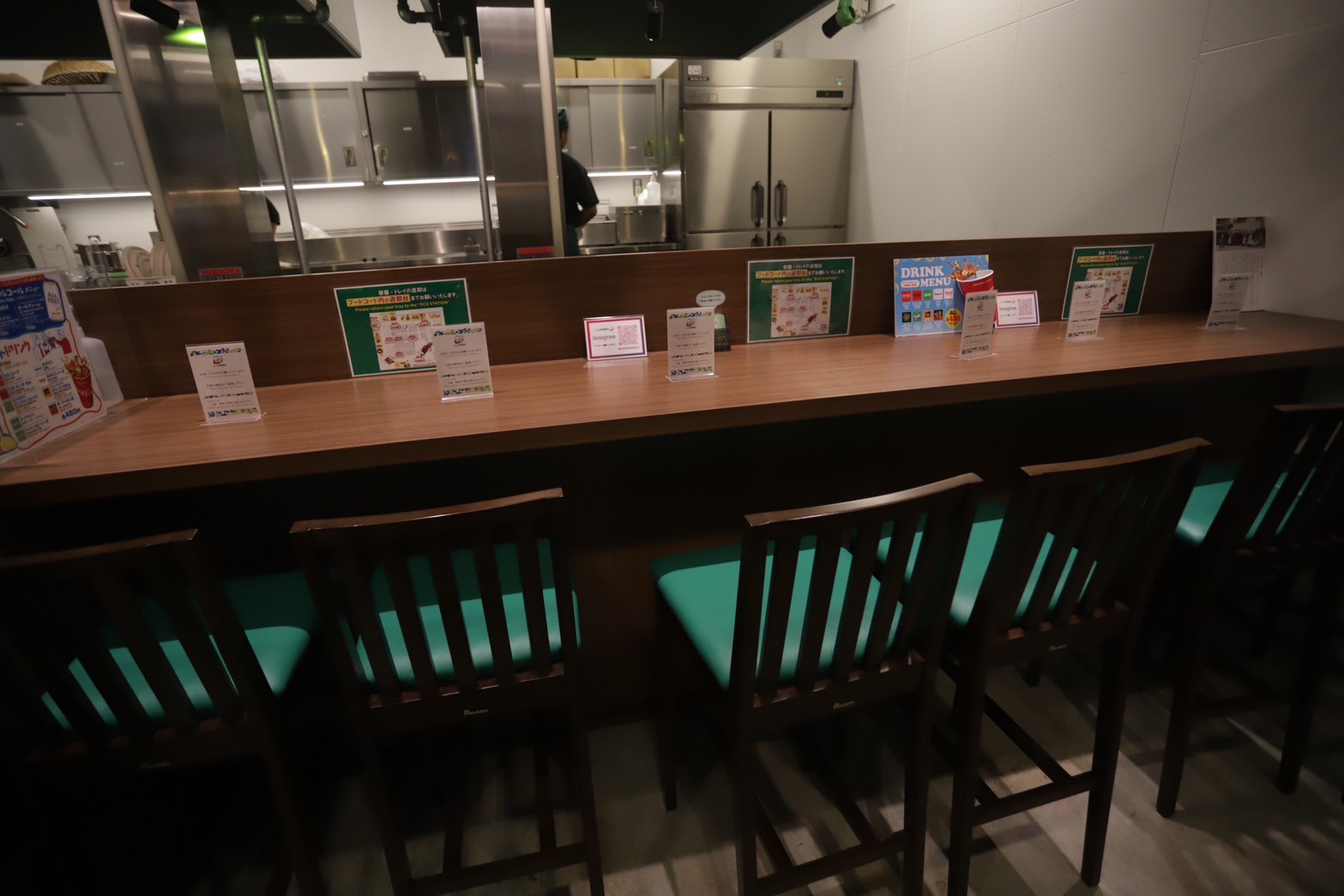 座りの席は要予約で有料だったりしますが、「やまもと」さんの専用カウンター席は、座りでも無料。