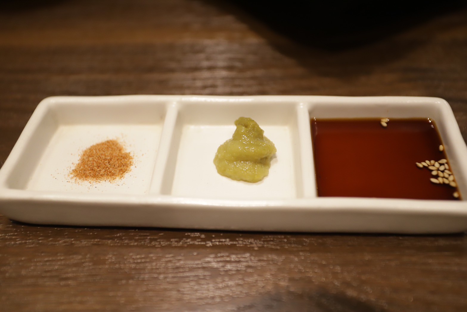 そして、いよいよ七輪鳥焼肉のスタートです!柚子ニンニク、スパイス塩、タレと3種類の味で食べ比べができるのも嬉しいポイント。