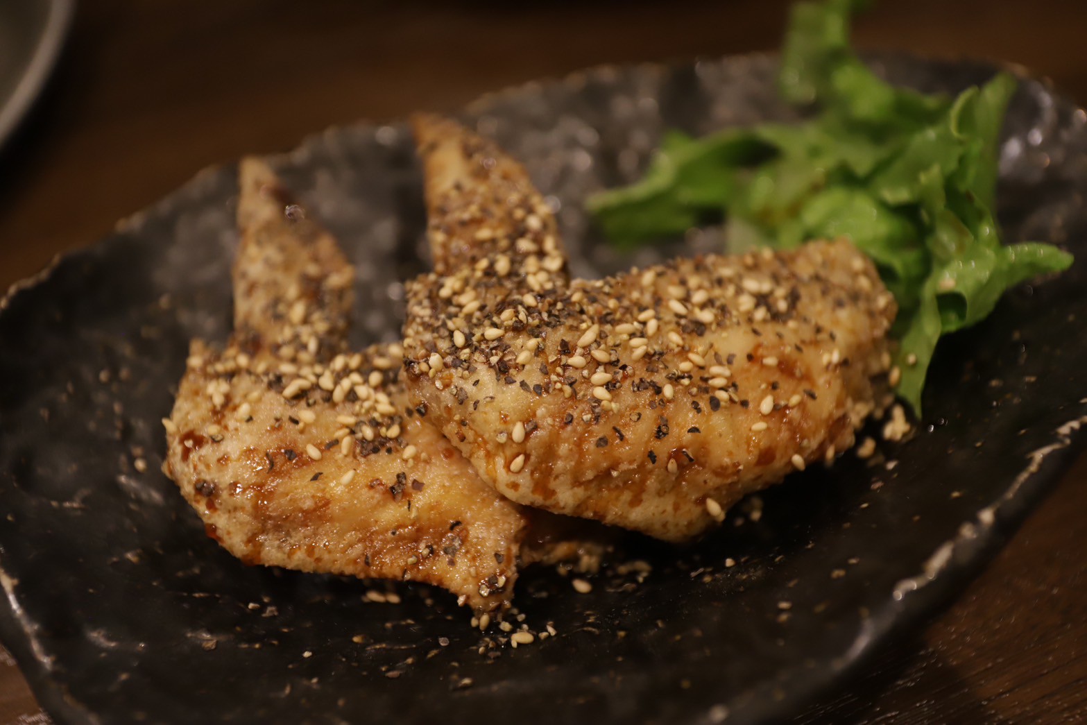 金手羽(320円):濃いめのタレでザクッとジューシーに揚げられた手羽先は、まさに「間違いない」美味しさです。