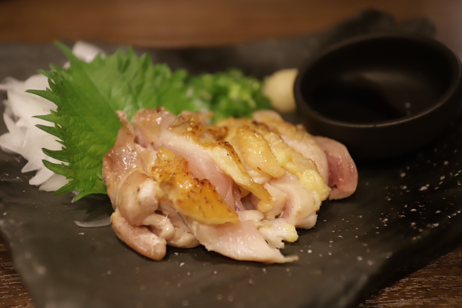 丹波地鶏ももタタキ(980円):毎回必ず注文する一品。炙られた香ばしさがたまりません。
