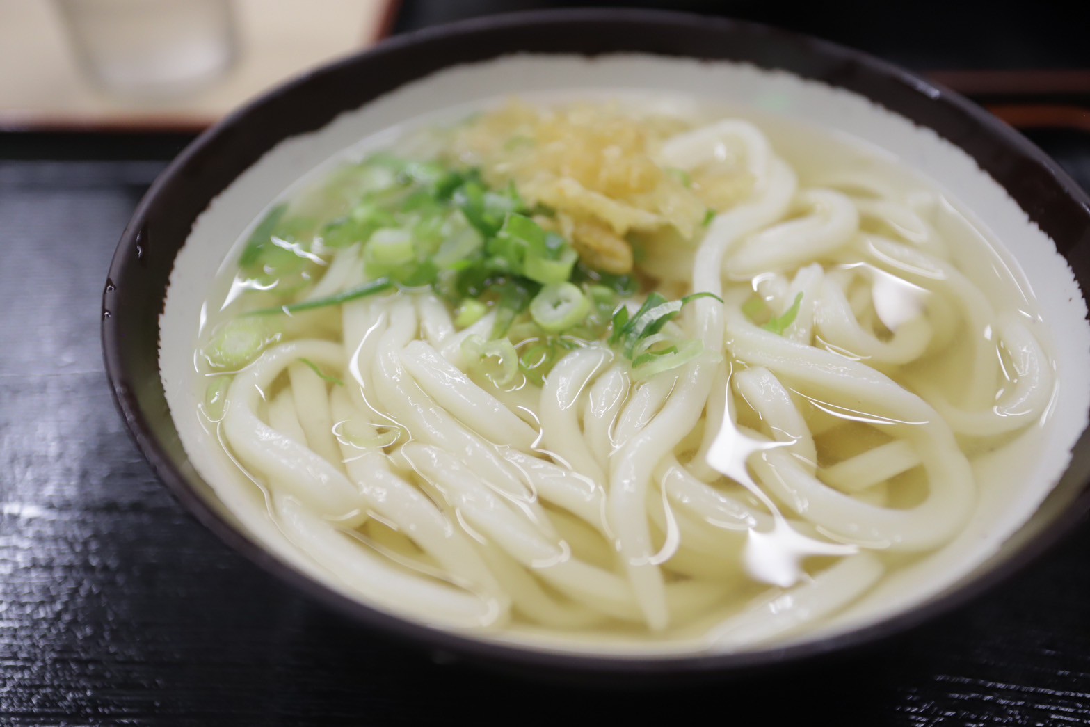 このお店の温かいうどんは、自分で麺を湯がき、出汁をかけるセルフスタイル。香川のうどん文化を肌で感じられる、クラシックなスタイルです。