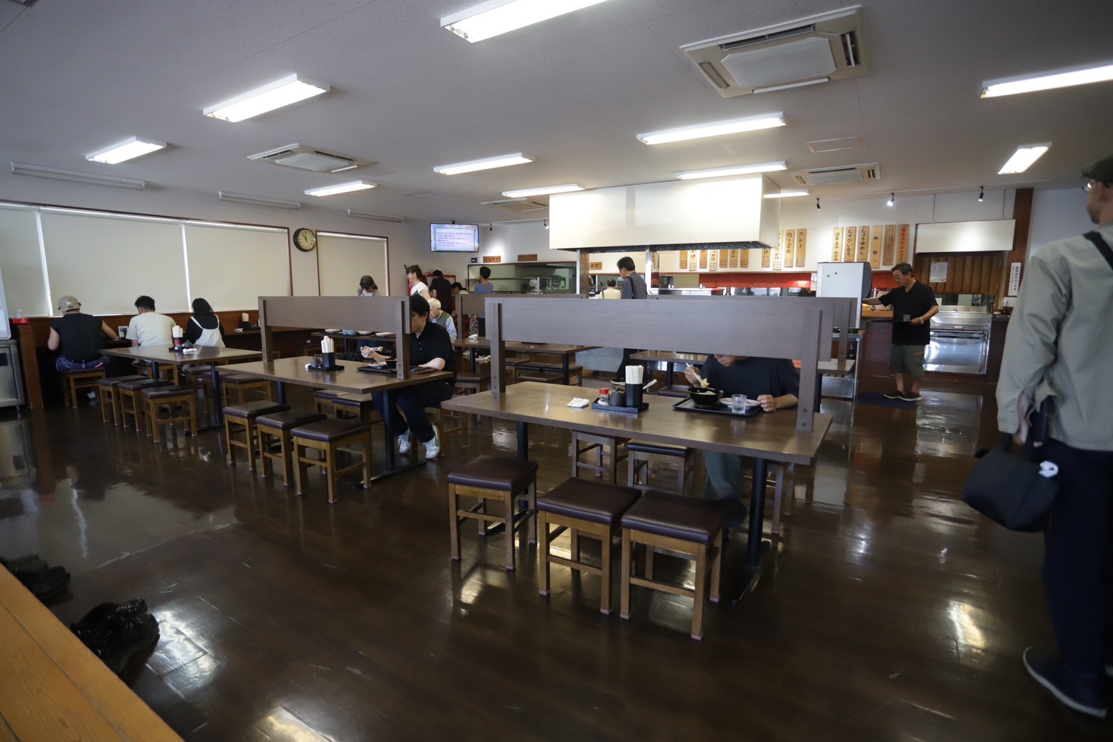ことでん太田駅から徒歩20分ほどの場所にあり、多くの有名人が訪れる人気店。食べログ百名店にも選ばれていますが、店内が広いため、幸運なことにこの日は並ばずに入店できました。創業75年の歴史を持つ老舗ですが、平成24年に移転リニューアルされており、清潔感のある綺麗な店内です。