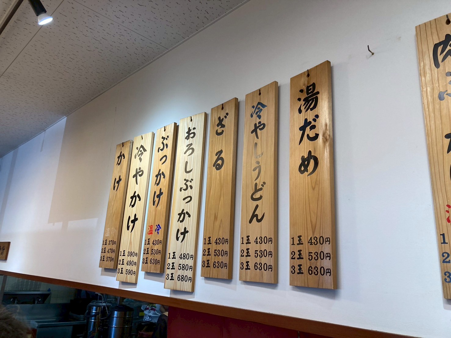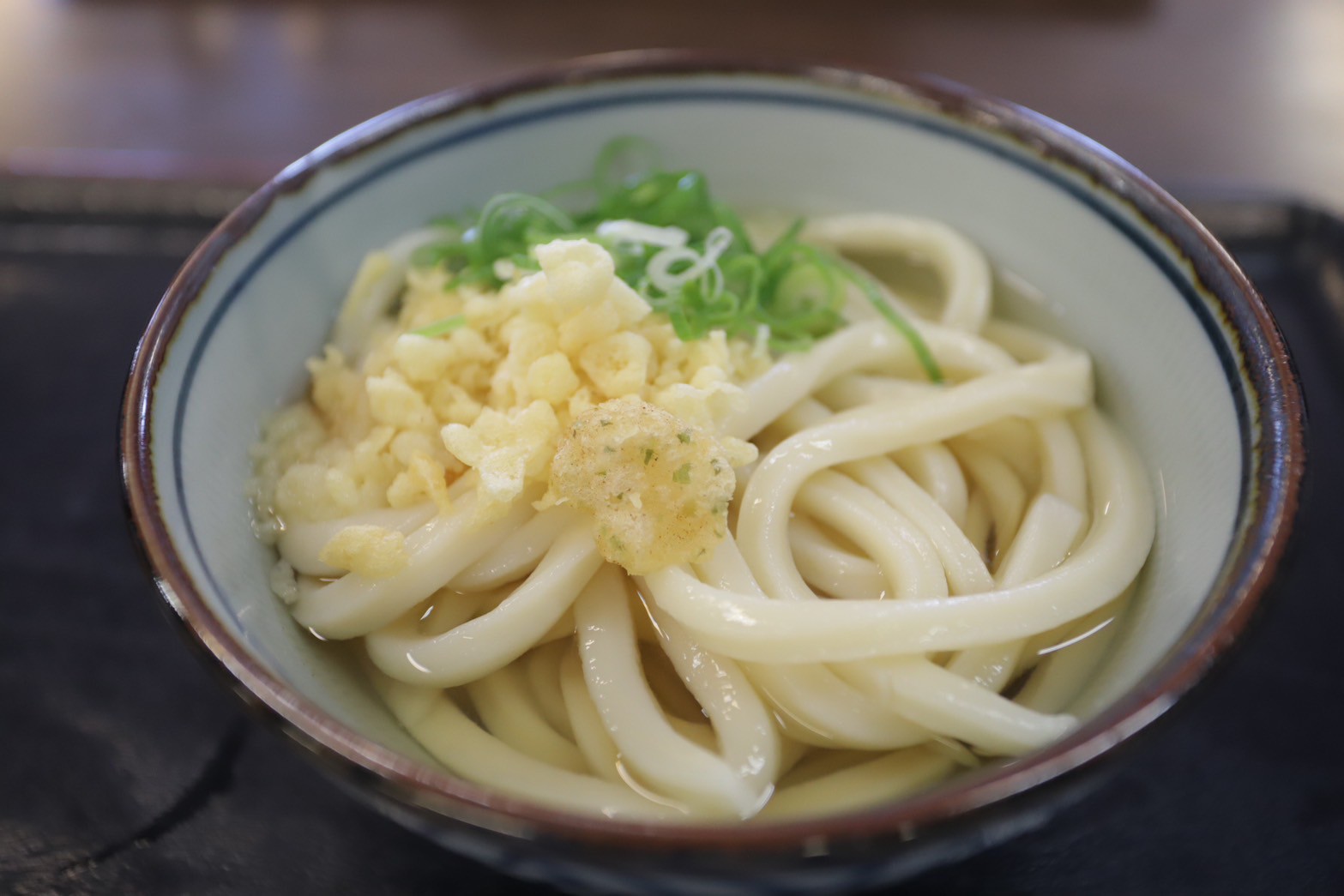 ここでは、自分で麺を湯通しし、温かい出汁をかけるフルセルフスタイルです。「湯通しする程度でいい」と教えてもらい、早速実践。この工程もまた、うどん巡りの醍醐味の一つですね。