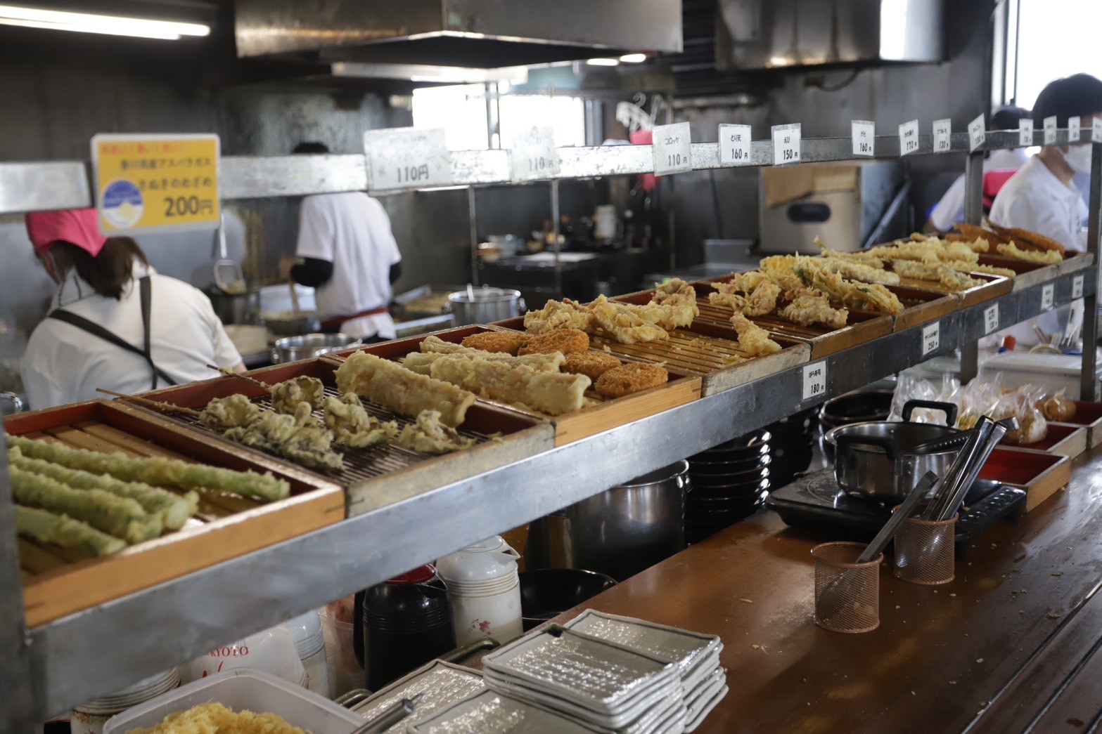 待っている間、ガラス越しにうどんを打つ様子が見られるのも嬉しいポイント。ワクワクしながら待ち時間を過ごせます。天ぷらも野菜にこだわっていて美味しそうでしたが、今回はハシゴのため泣く泣く我慢しました。