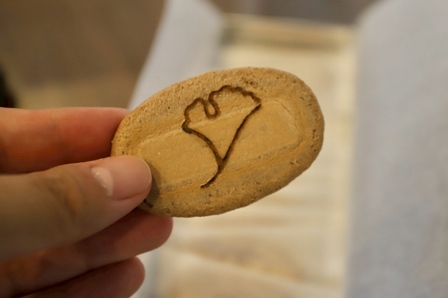 「ミリエーム」の「ふのやき」は、麩焼き煎餅の形をしています。一口サイズの軽やかな食感で、口に入れるとほんのりと上品な味噌の香りが広がります。