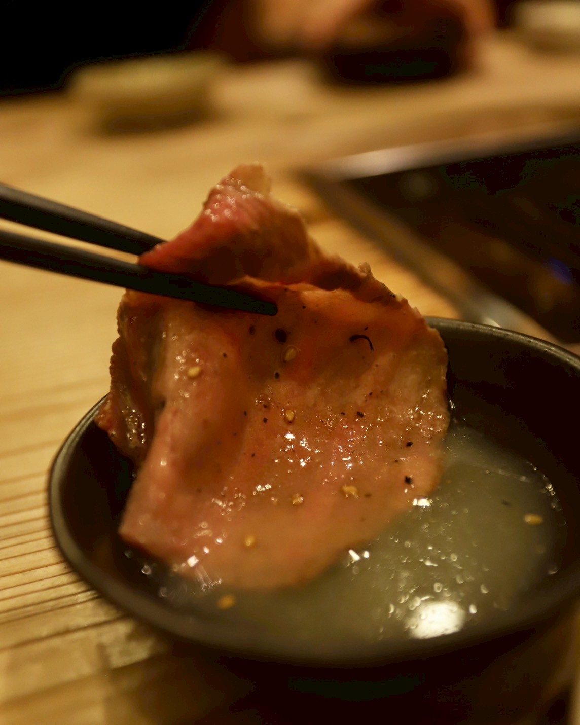 サシの入ったタンはワサビ醤油でトロける美味さ。
