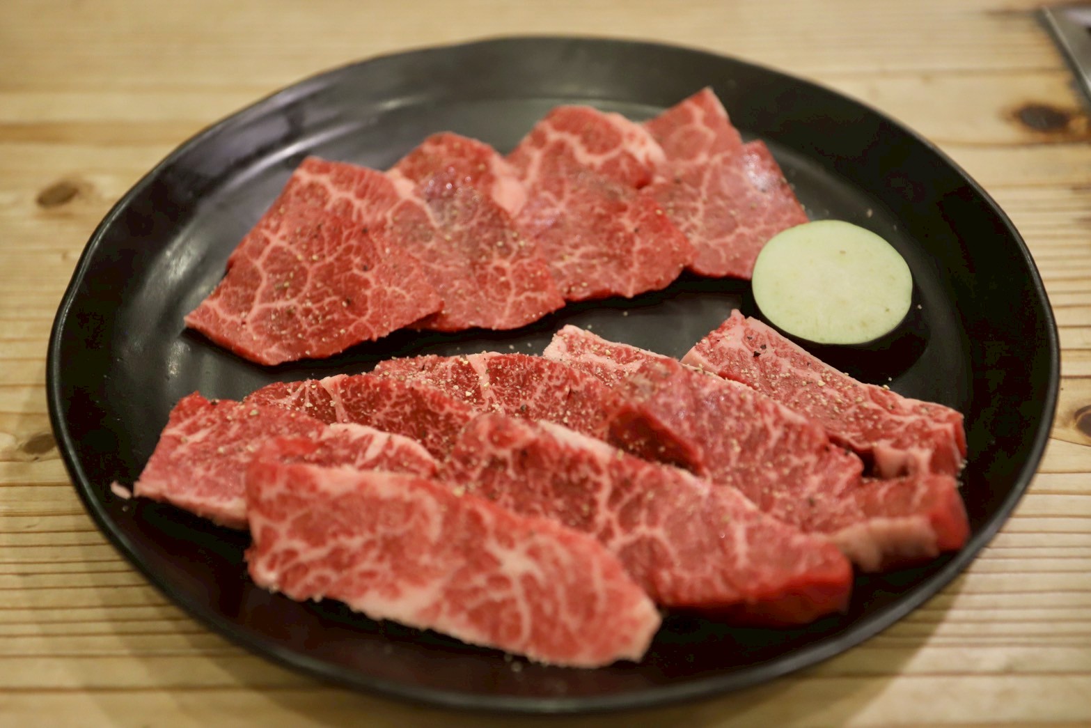 薄切りと厚切りの食べ比べ。