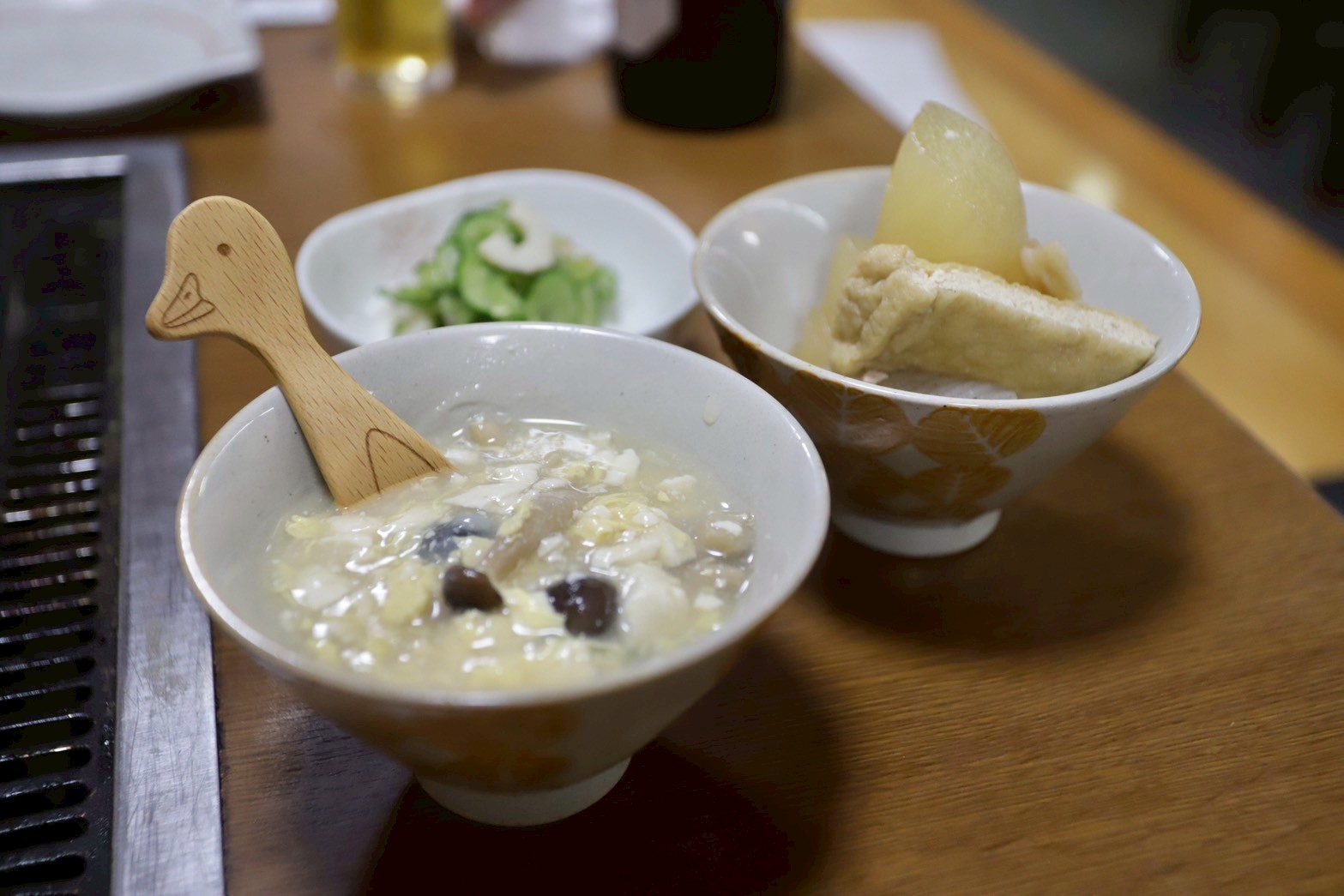 大根とお揚げの炊いたんや、玉子と豆腐のあんかけ、きゅうりの酢の物。