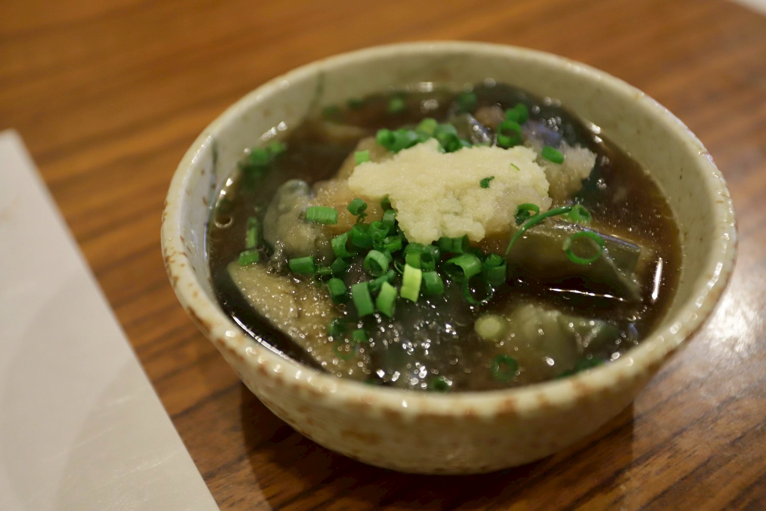 お通しに茄子の揚げ浸し。