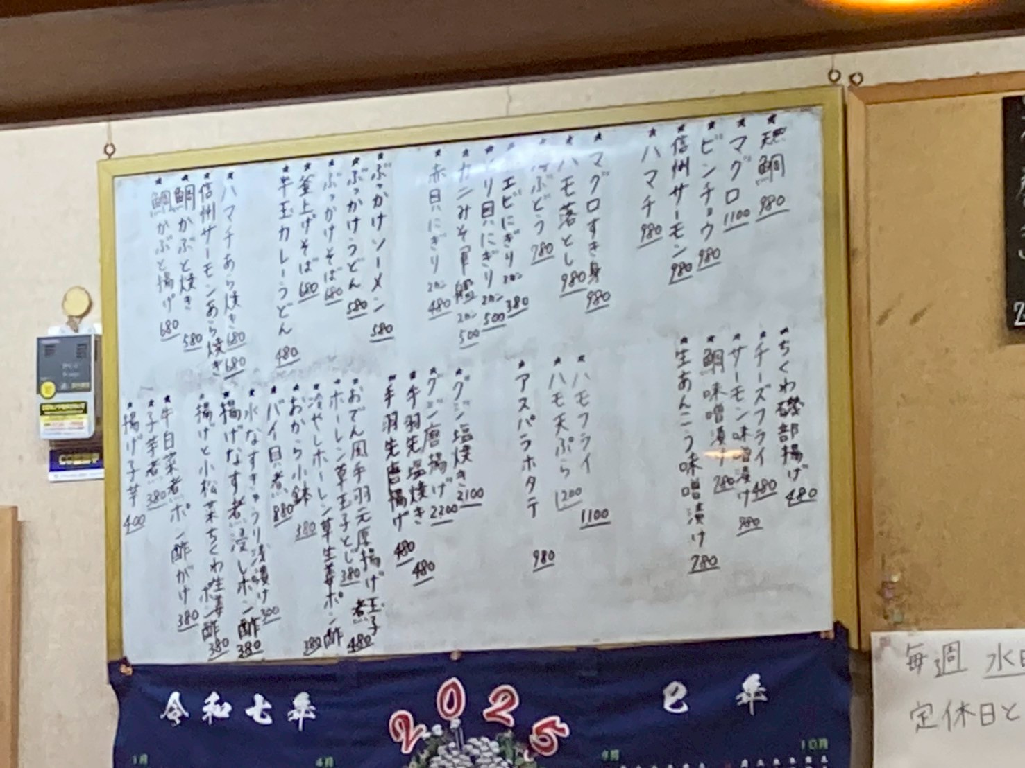 メニューはホワイトボードに記載。