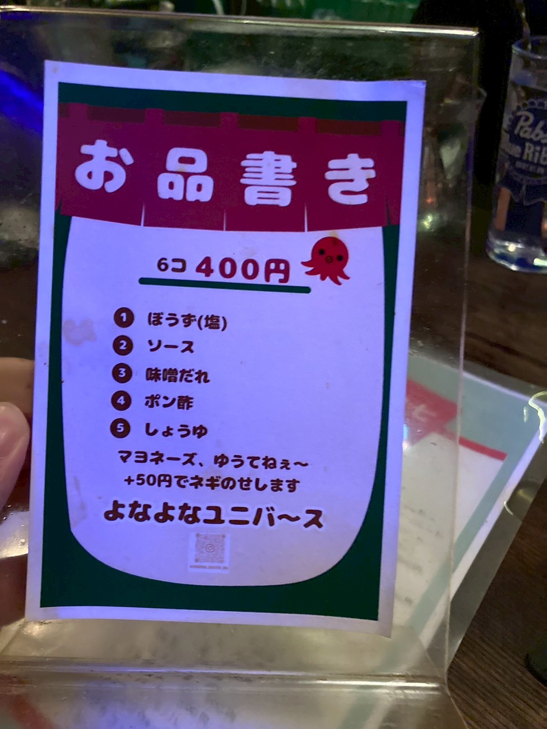 ちょっとたこ焼きがつまめるバーってエエっすね!