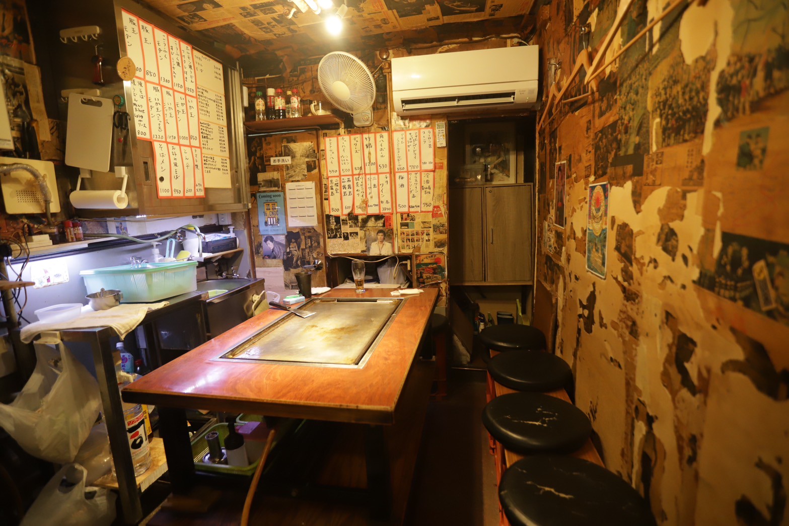 そして鉄板テーブル一つだけ、男だけなら4人くらいしか座れなさそうなサイズ感。