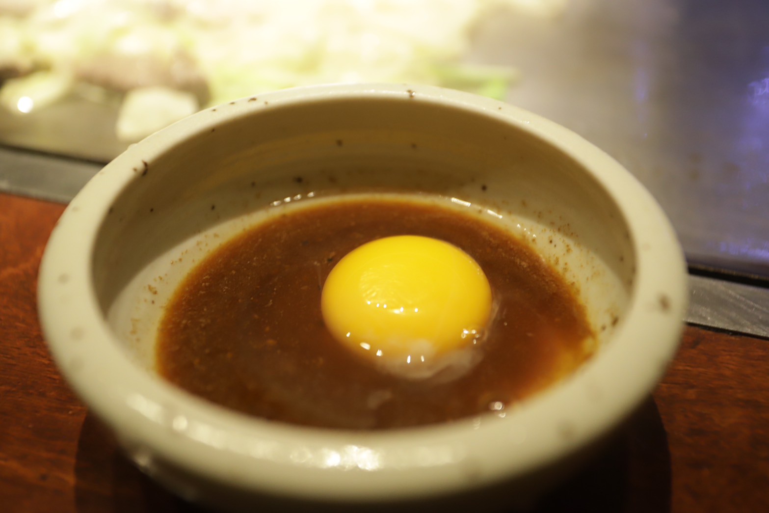 出汁をかけながら焼いて、すき焼きみたいなタレにつけながら食べるスタイル。