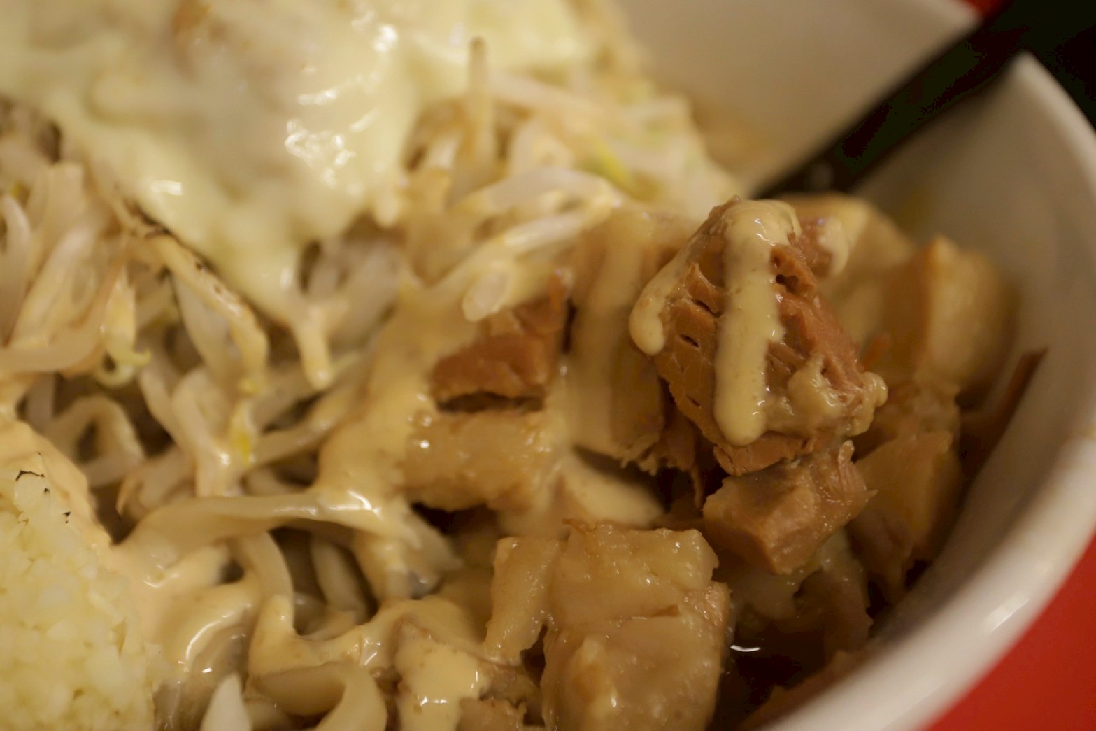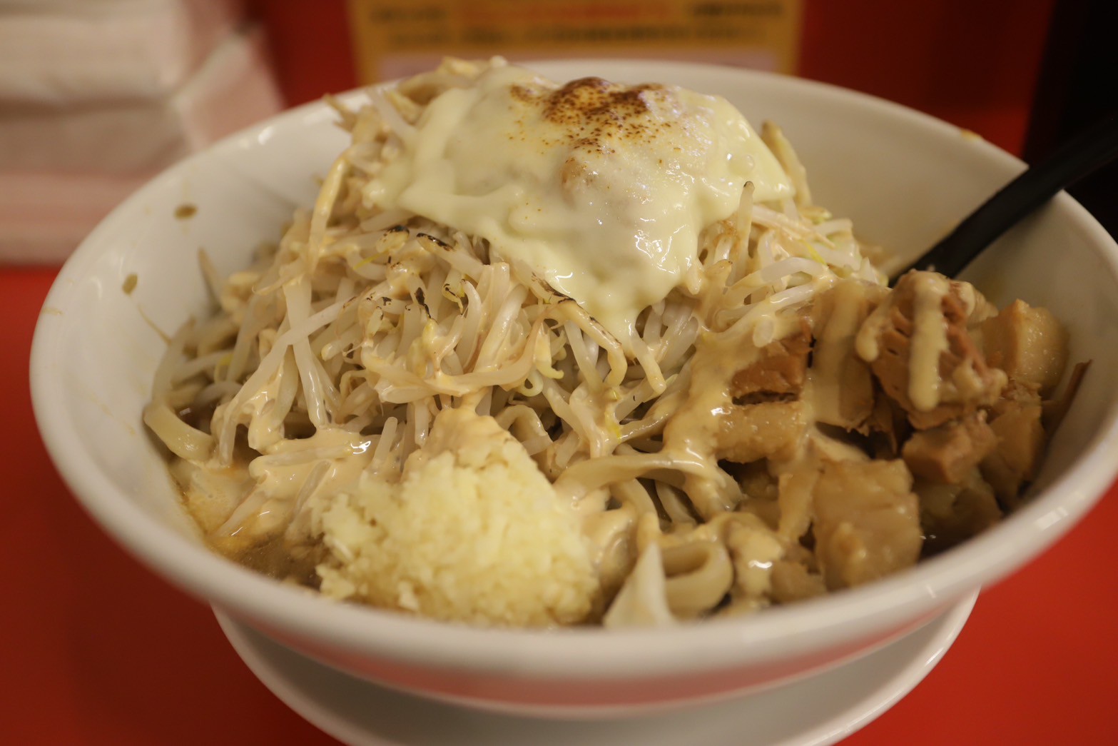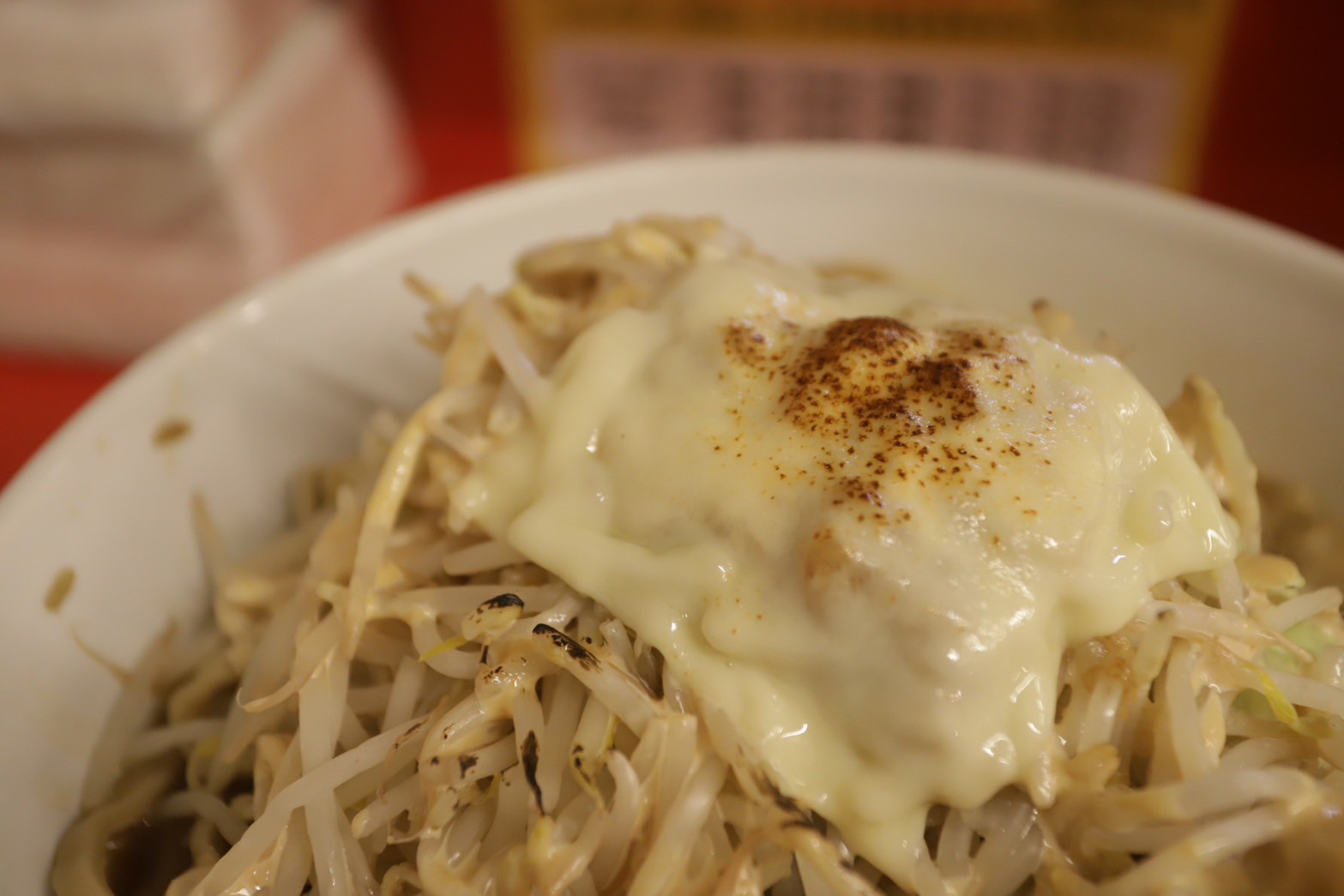 ガリマヨと炙りチーズのトッピングは、さらにジャンク度を高め、最後まで飽きさせない味変アイテムとして大活躍。