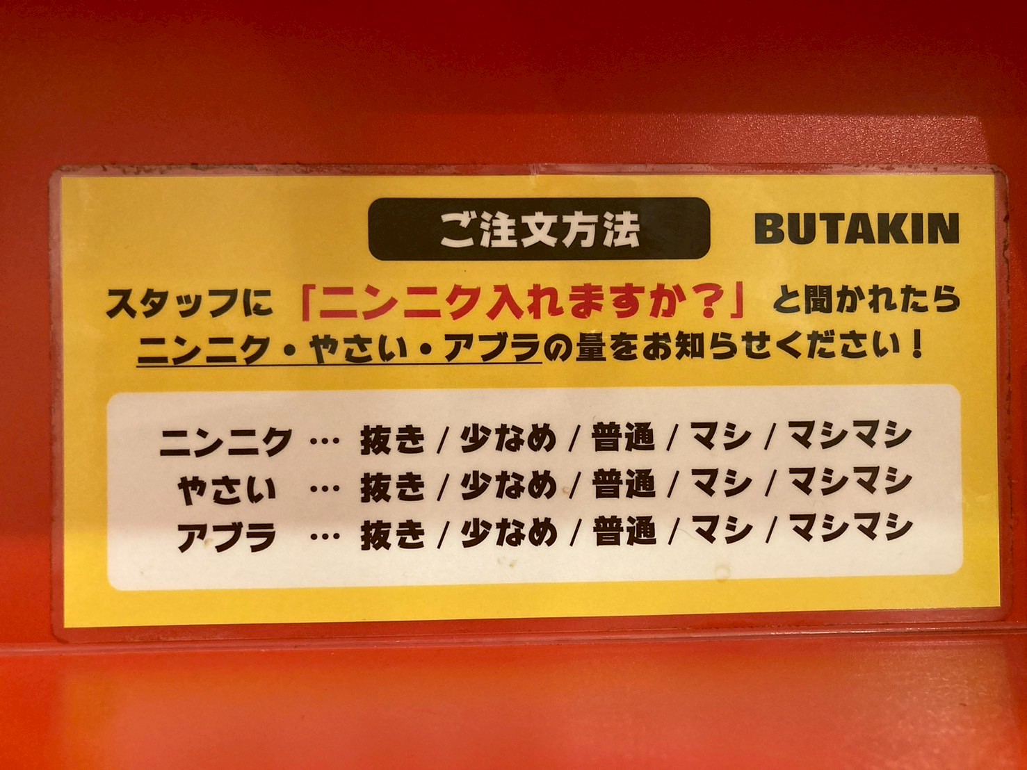 BUTAKINの最大の魅力は、そのサービス精神と丁寧な接客にあります。野菜やニンニク、背脂の量について、店員さんがわかりやすく確認してくれるため、初めて二郎系を食べる方でも安心して注文できます。独自のルールを押し付けないスタンスが、多くのファンに愛される理由です。