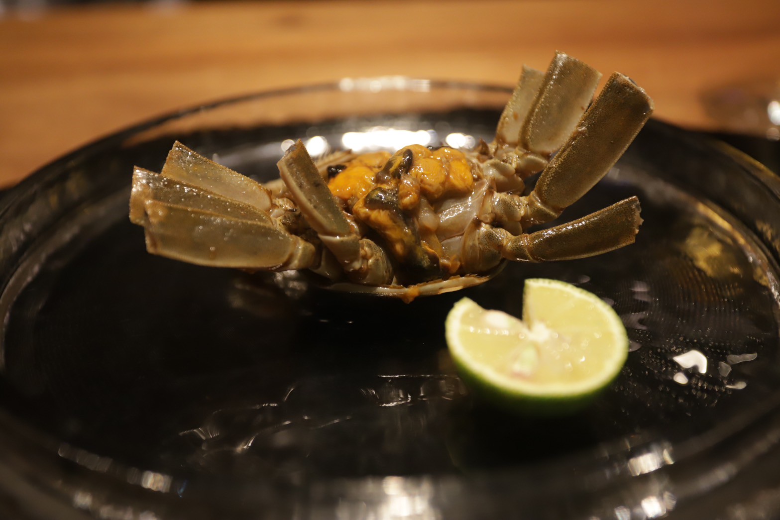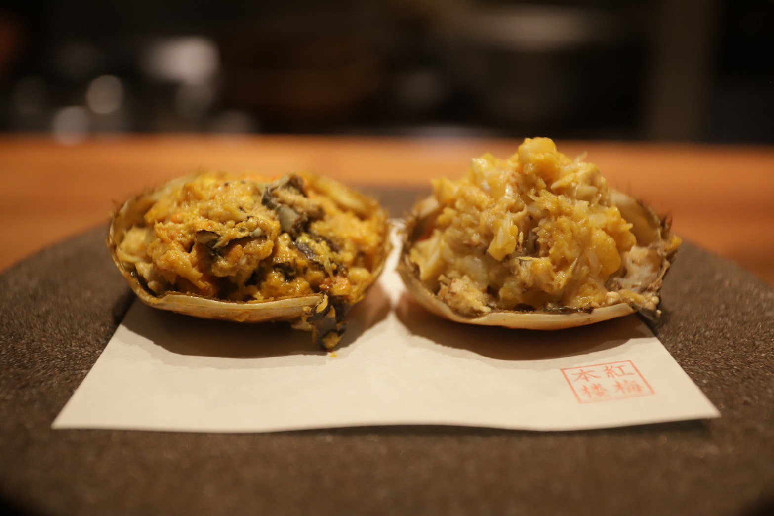 紹興酒につけた甘い身にトロットロの蟹味噌がかかって官能的。