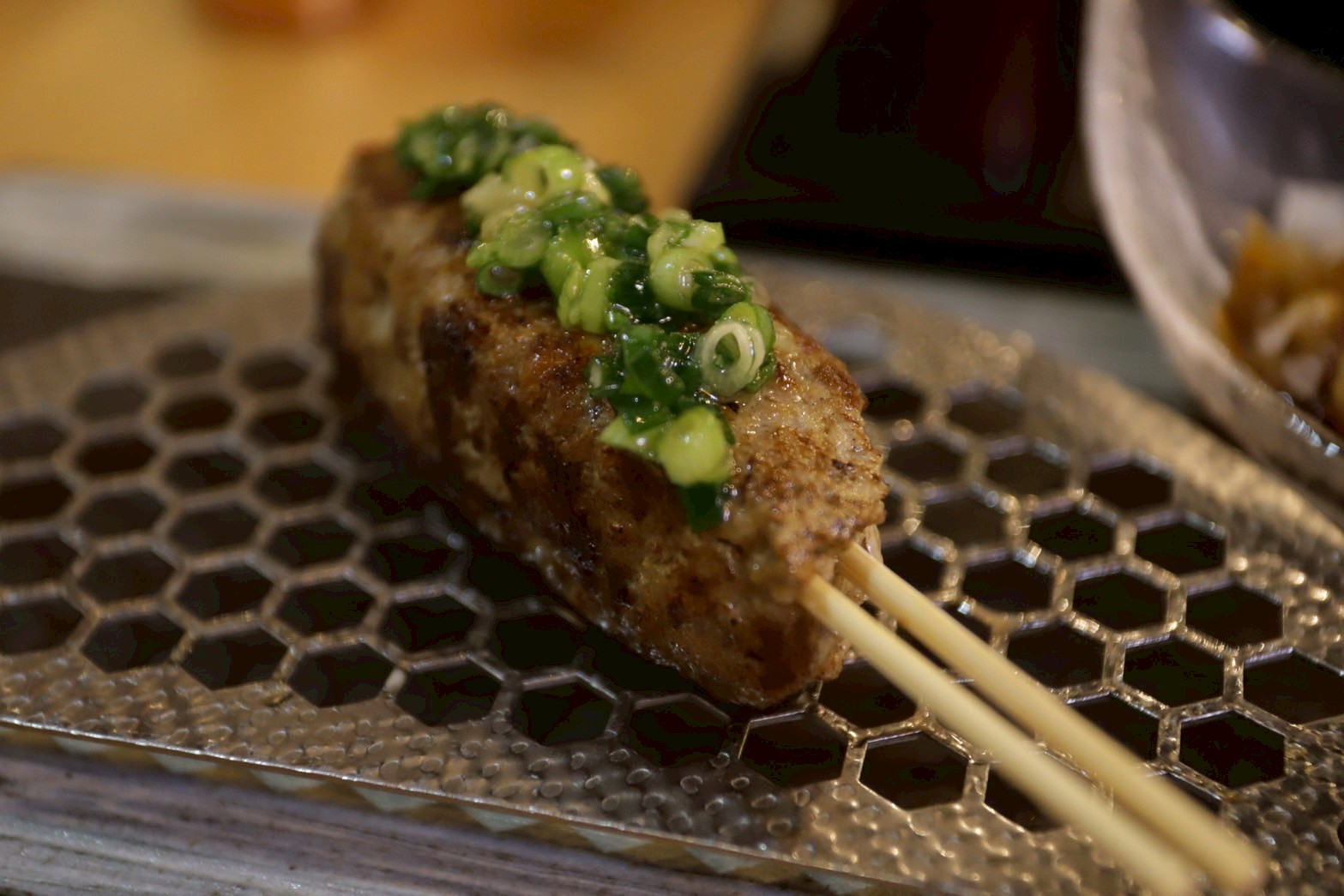 ジューシーに焼き上げられた牛タンつくねは、たっぷりのネギ塩ダレとの相性が抜群。肉の旨味と塩ダレのパンチが効いており、キンキンに冷えたビールのお供に最適です。