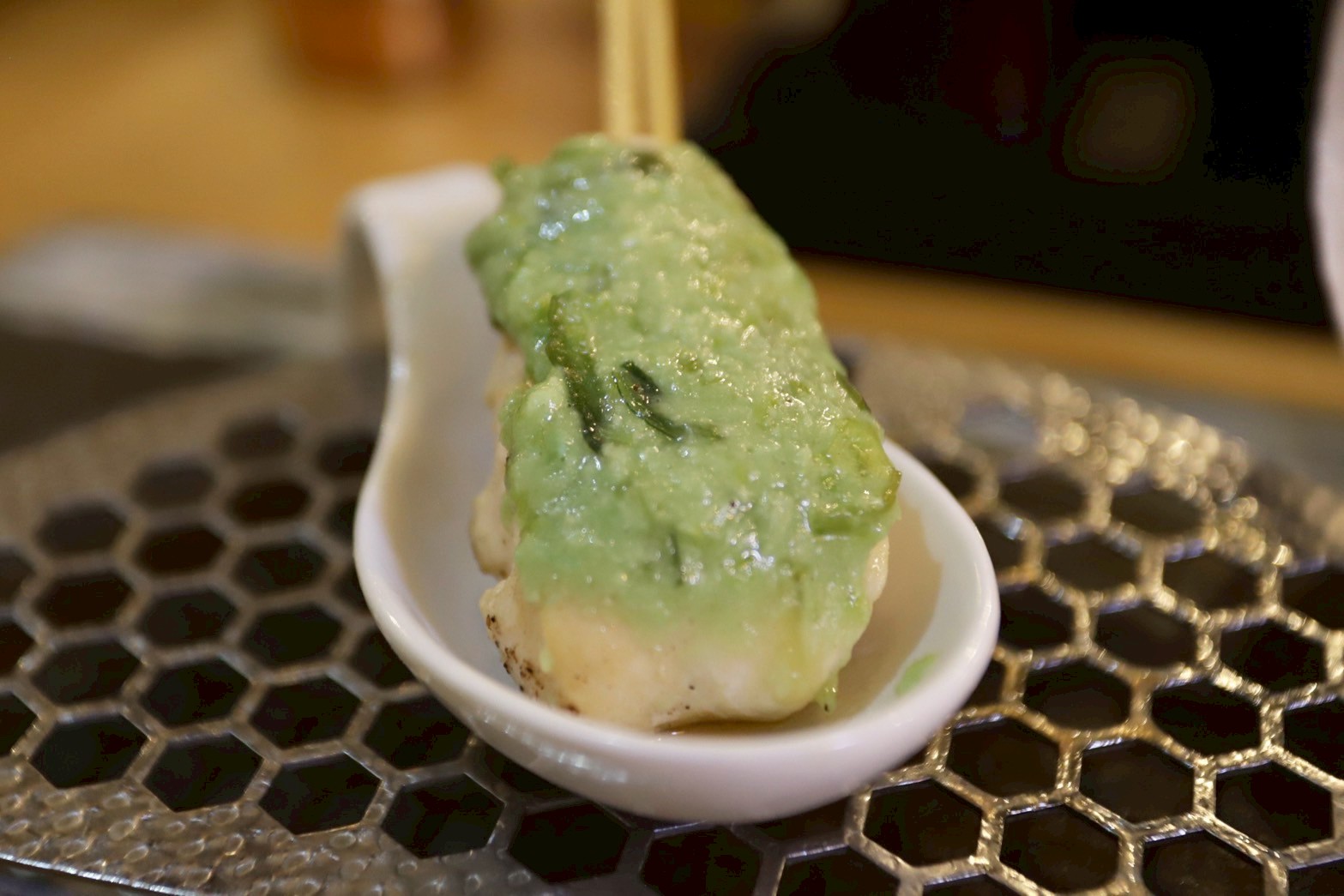 朝挽きササミの海苔トロロ:香り高い海苔とトロロでいただくヘルシーなササミ串は、罪悪感なく楽しめるのが魅力です。