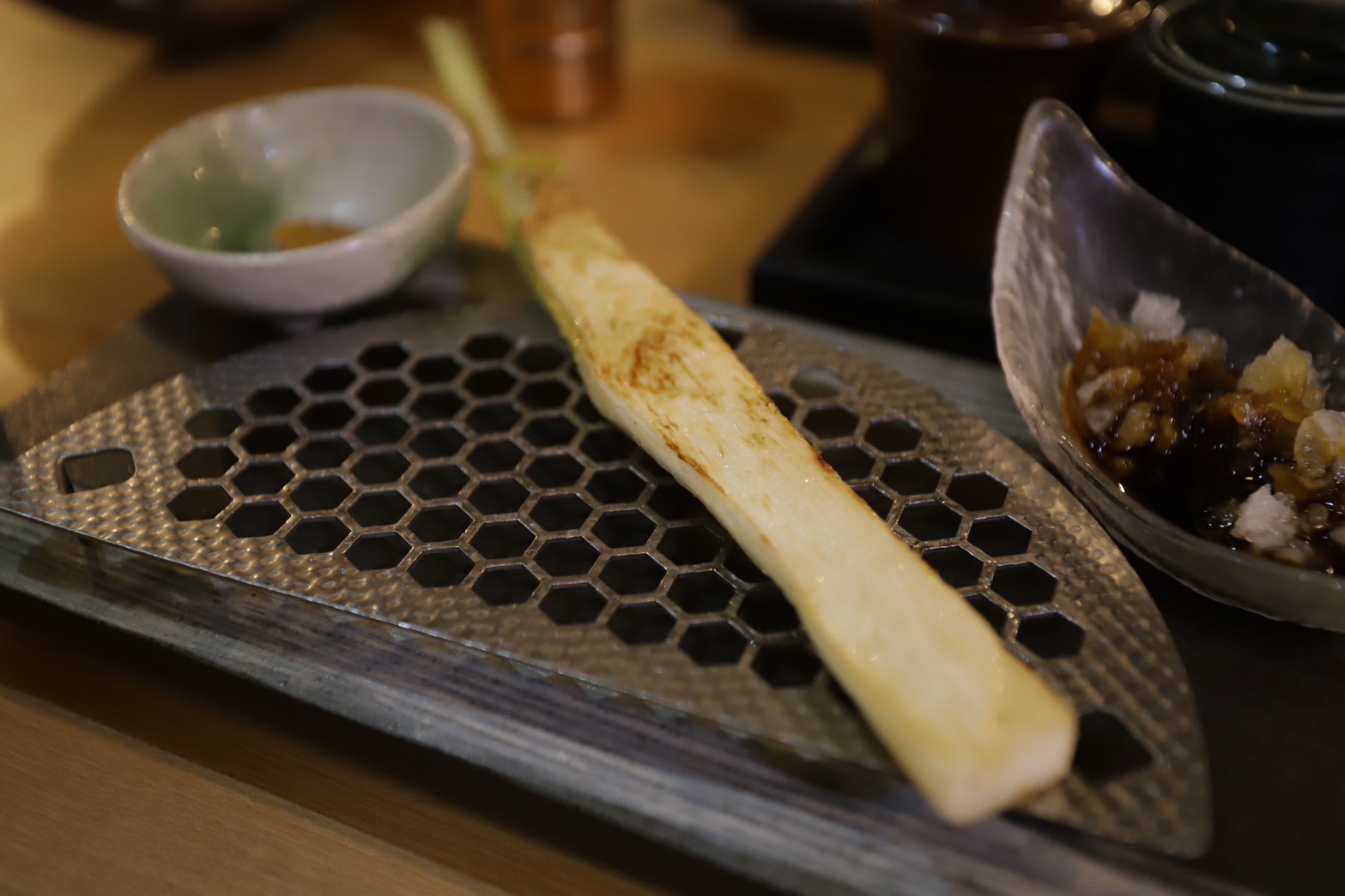 まこもだけ(350円):甘めのゆず味噌にディップして味わう、季節の美味しさ。
