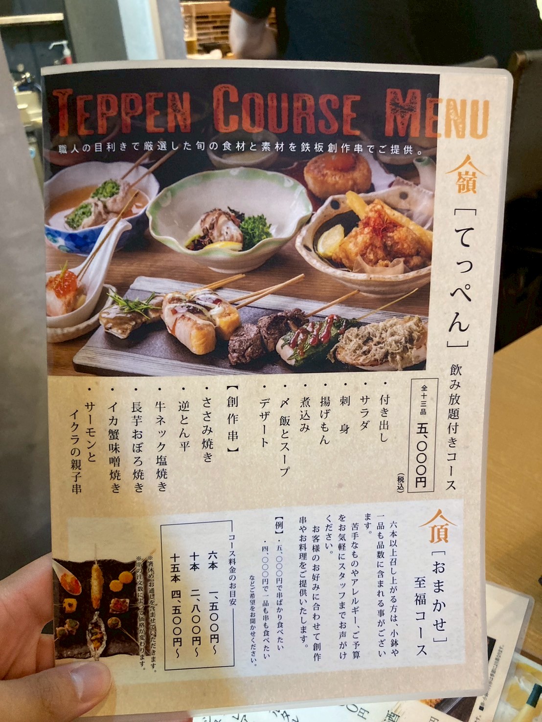 京橋の「てっぺん」さんは、定番の鉄板焼きから、遊び心とアイデアに満ちた創作串まで、飽きさせないメニュー構成が魅力。次々と新しい味に出会えるため、サシ飲みはもちろん、グループでの訪問にもおすすめです。