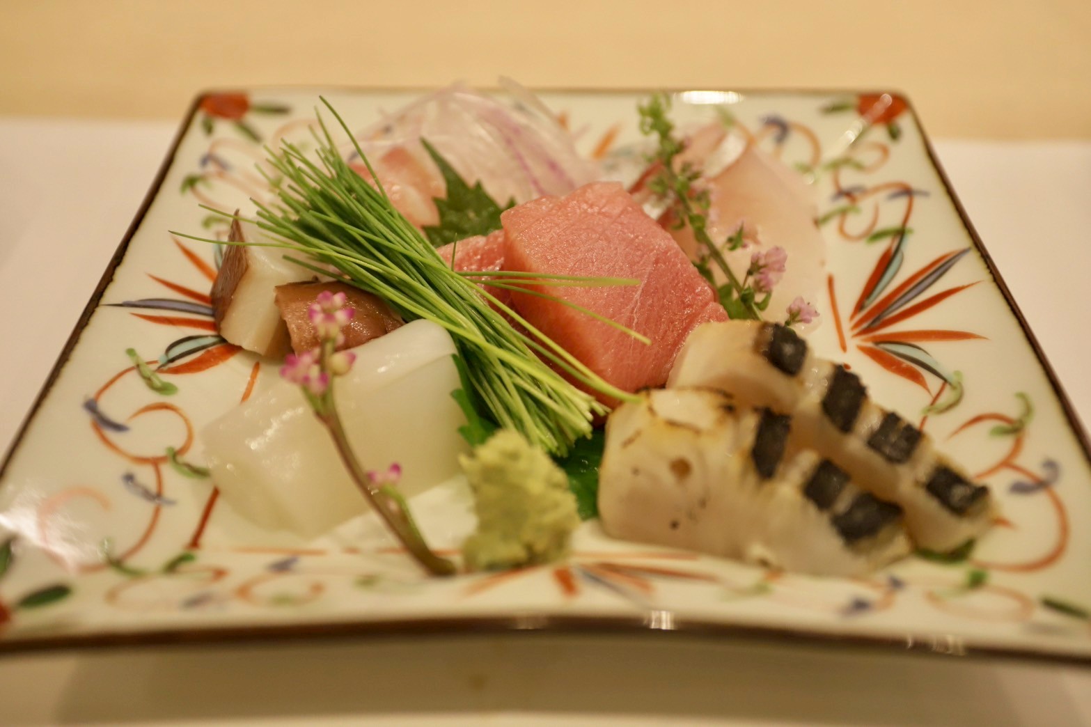 脂ののったカンパチは皮目を炙って良い香り。サクッと歯切れの良いハリイカも抜群。