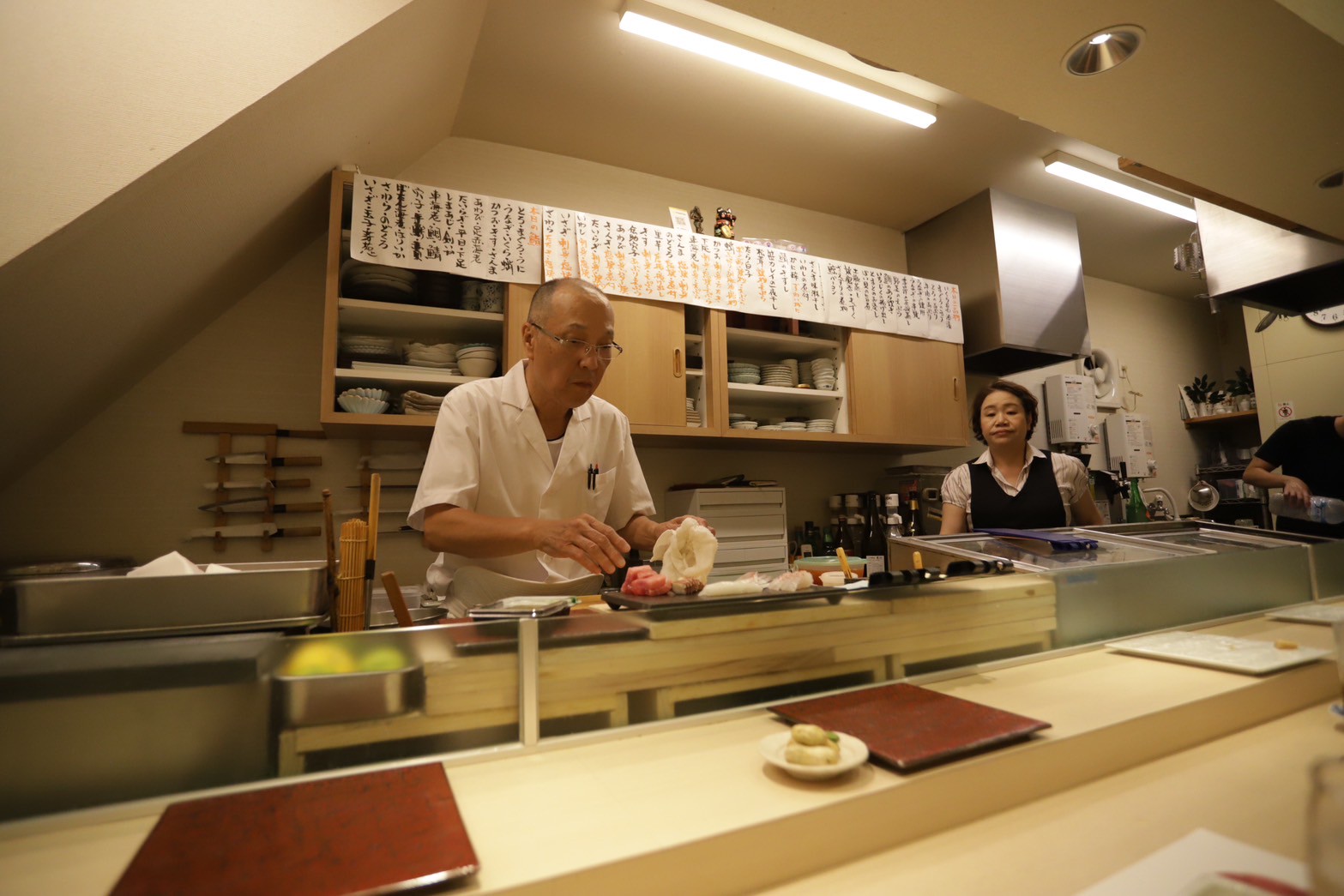 手際よく寿司を握る大将と、阿吽の呼吸でサポートをしていく女将さん。