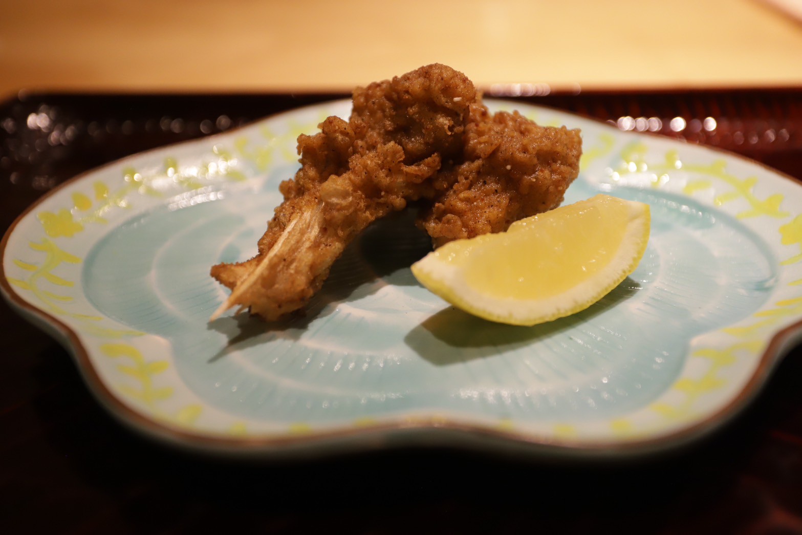 ふぐ唐揚げ: カマの部分をフライドチキン風にした通称「KFF(北新地フライドふぐ)」。スパイスが効いており、特製のりんごガリと共に酒が進みます。