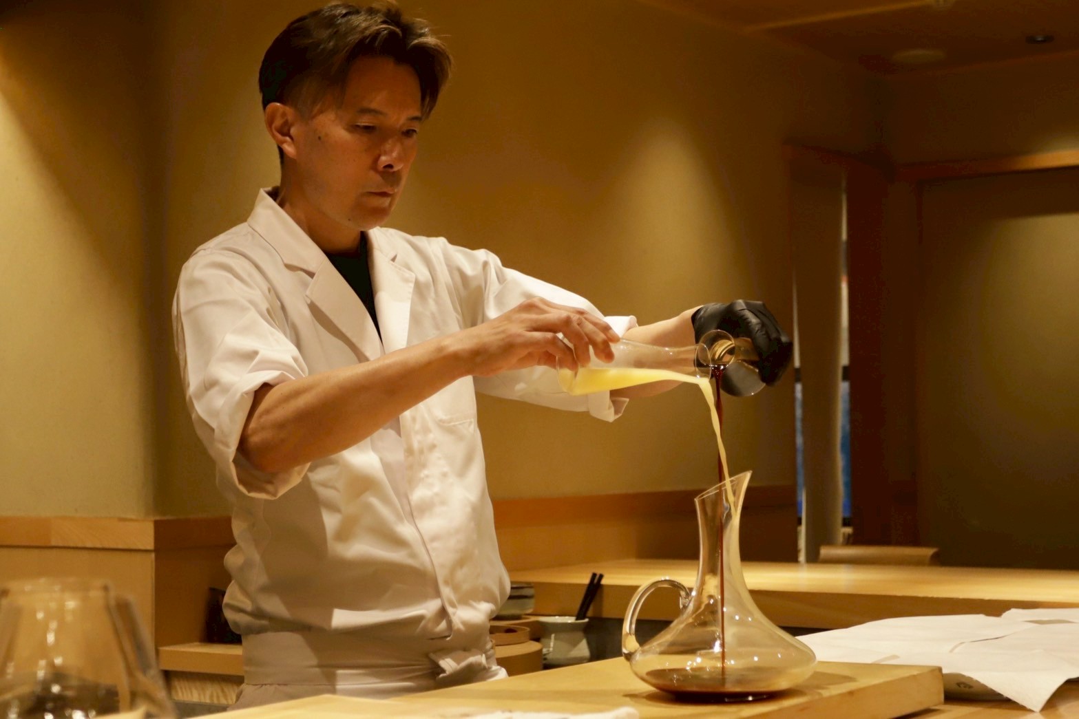 まずは、目の前で柚子の果汁を使い、丁寧にポン酢を合わせるパフォーマンスからスタート。この「合わせポン酢」が非常に香りが良く、食欲を刺激します。