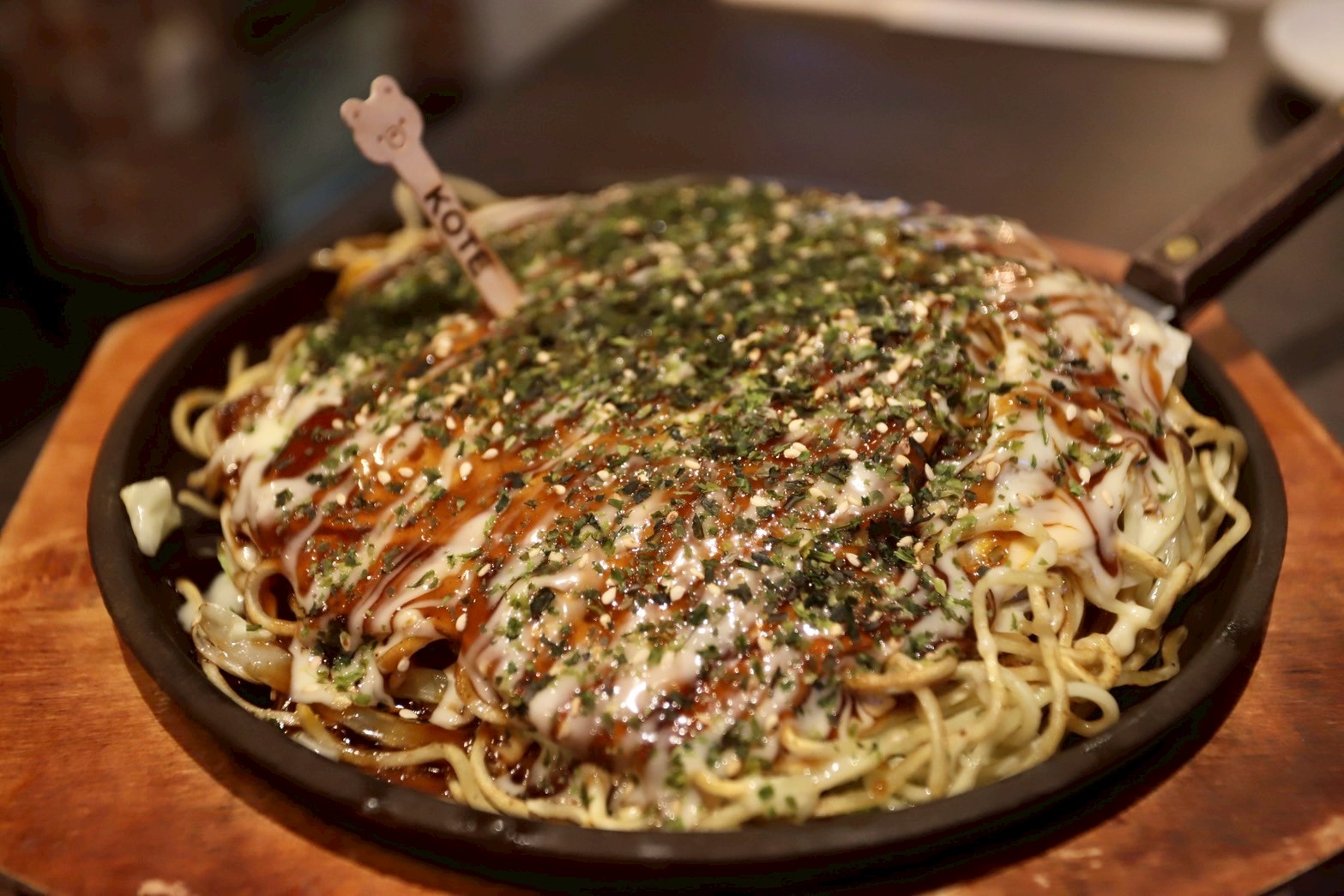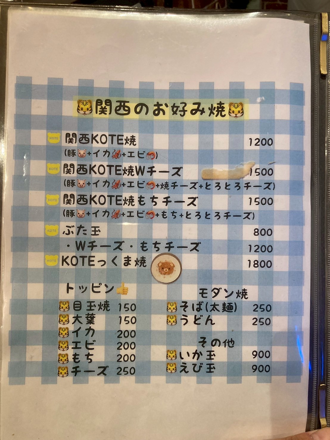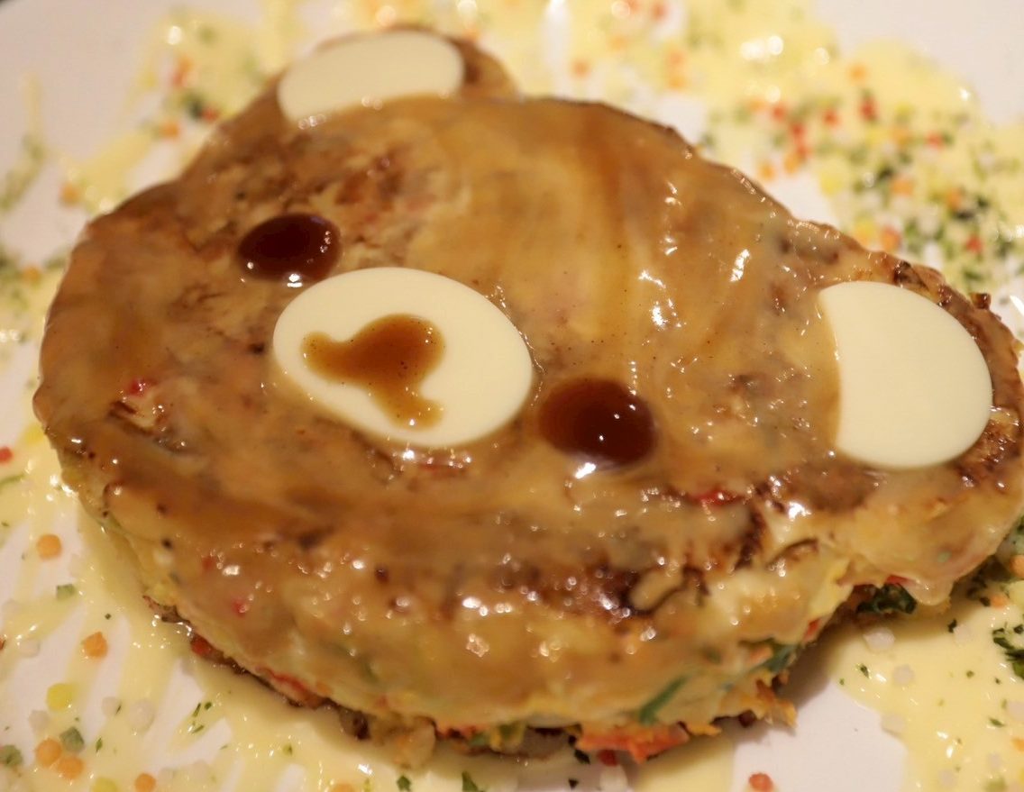 関西風はシンプルに豚玉、、と思ったら、クマの顔のお好み焼きを発見!!