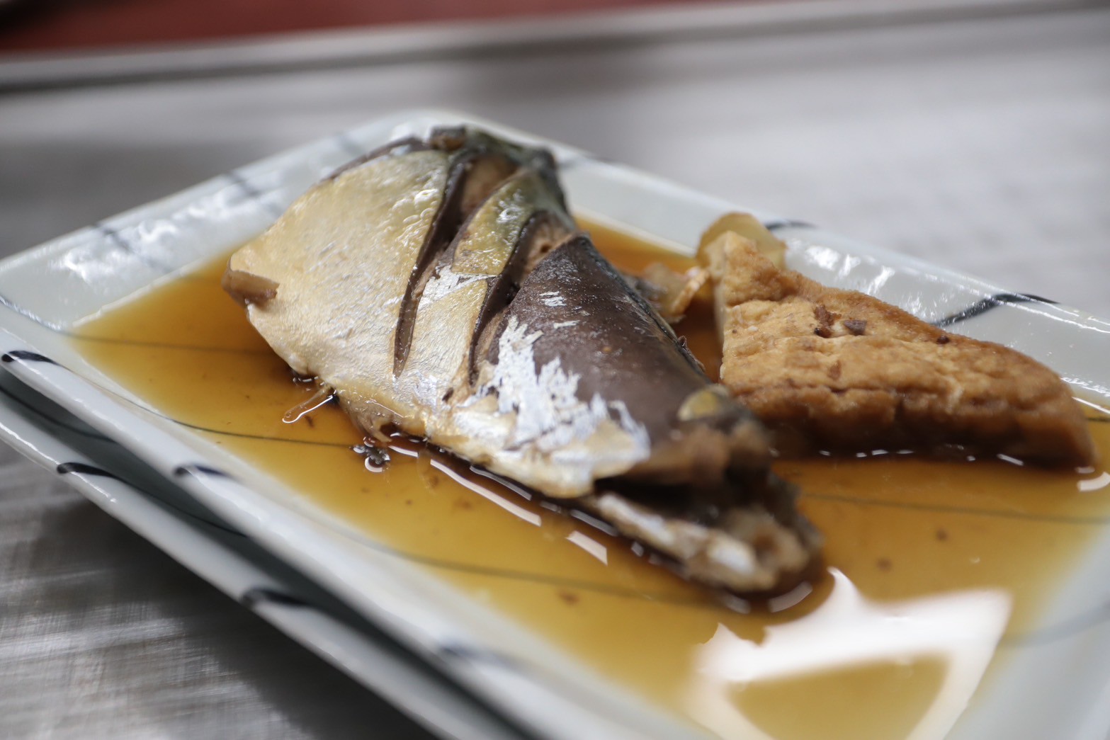 まずは瓶ビールで乾杯して、サバの煮付けをつまむ。