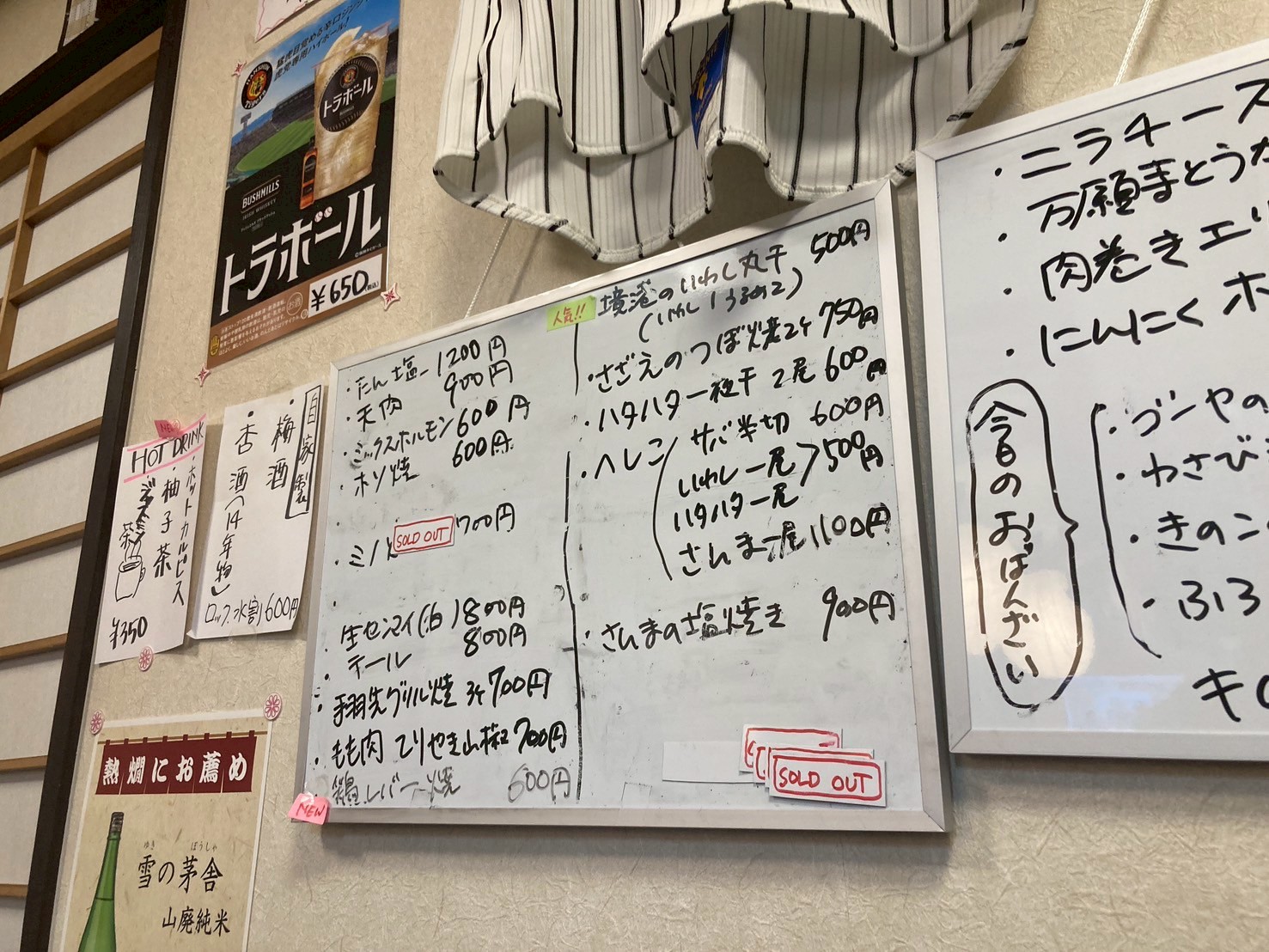 お好み焼きや焼きそばだけでなく、ホワイトボードにはその日のおすすめのおばんざいや酒のアテもあり、酒飲みのツボを押さえています。