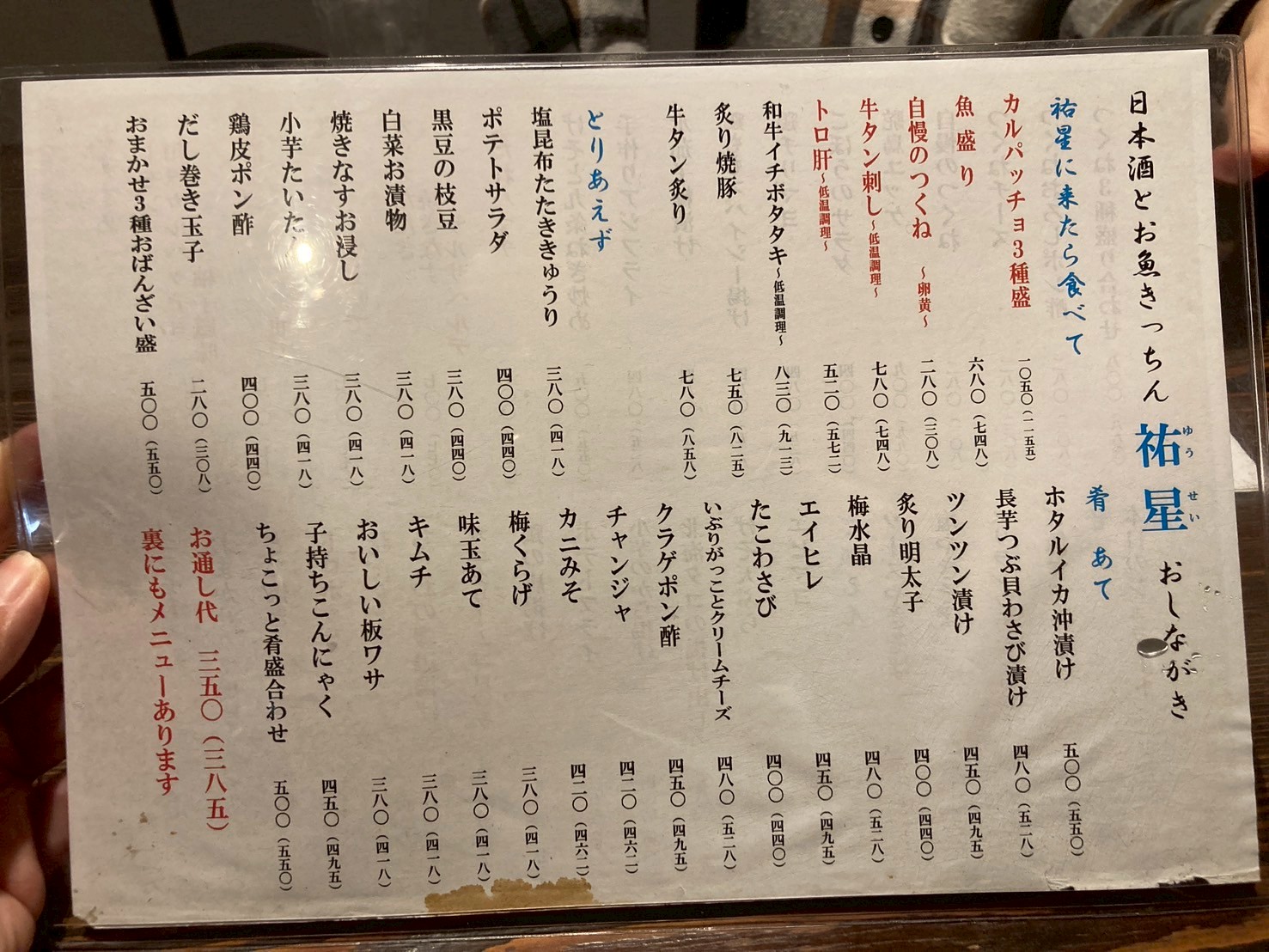 祐星の料理は、新鮮な魚をベースに、居酒屋の枠を超えた一工夫が凝らされています。