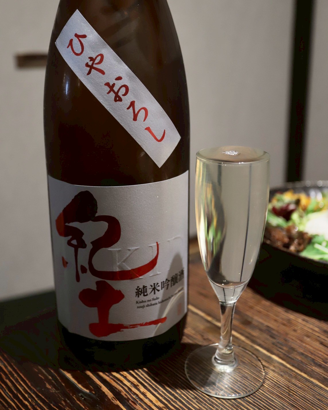 まずはオリジナルの一杯「祐星特別純米」からスタート。その後は、季節のひやおろし「紀土」など、季節限定の銘柄も充実しており、日本酒好きを飽きさせません。シャンパングラスで提供されるフルーティなお酒は、女性にもおすすめです。