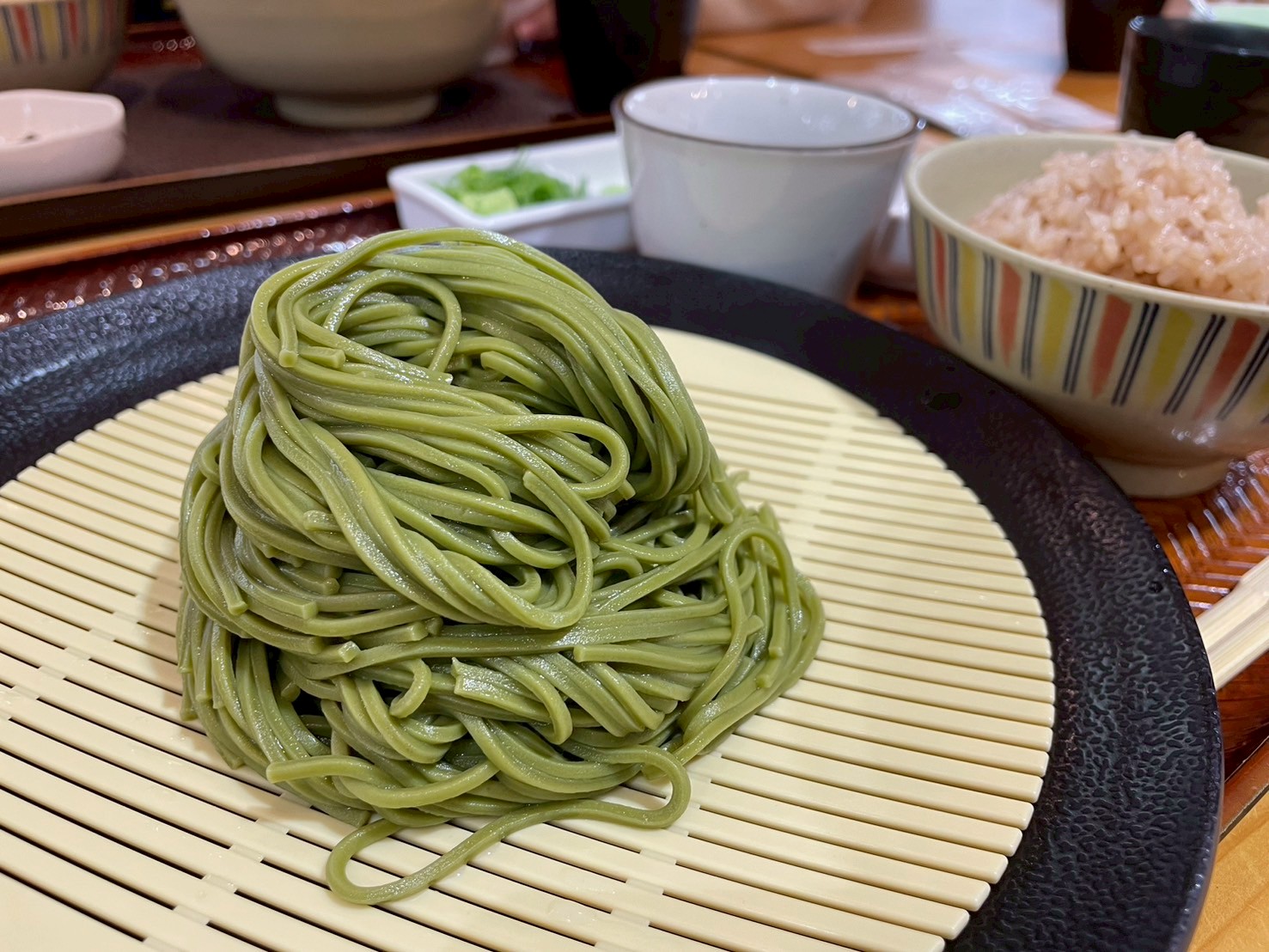 「村抹茶そば」は、温かいものと冷たいもので、違った美味しさを楽しめます。