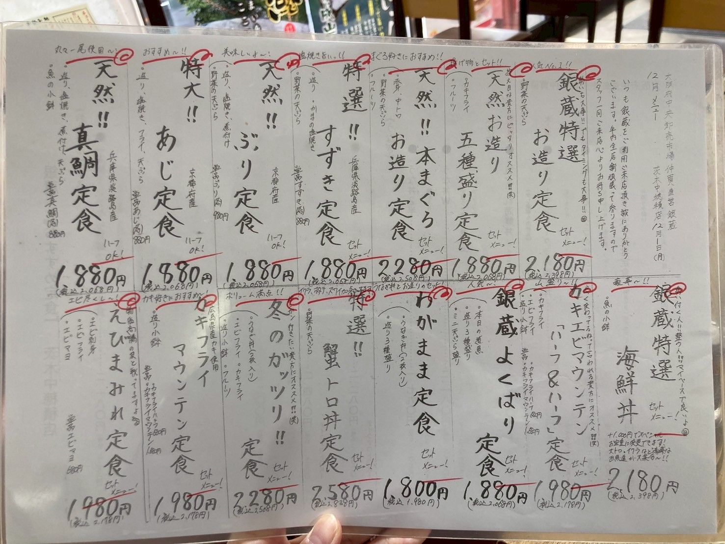 銀蔵特選お造り定食2180円