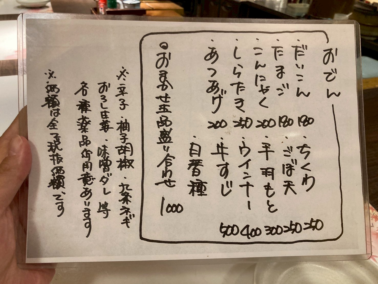 おでんおまかせ5品盛り1000円