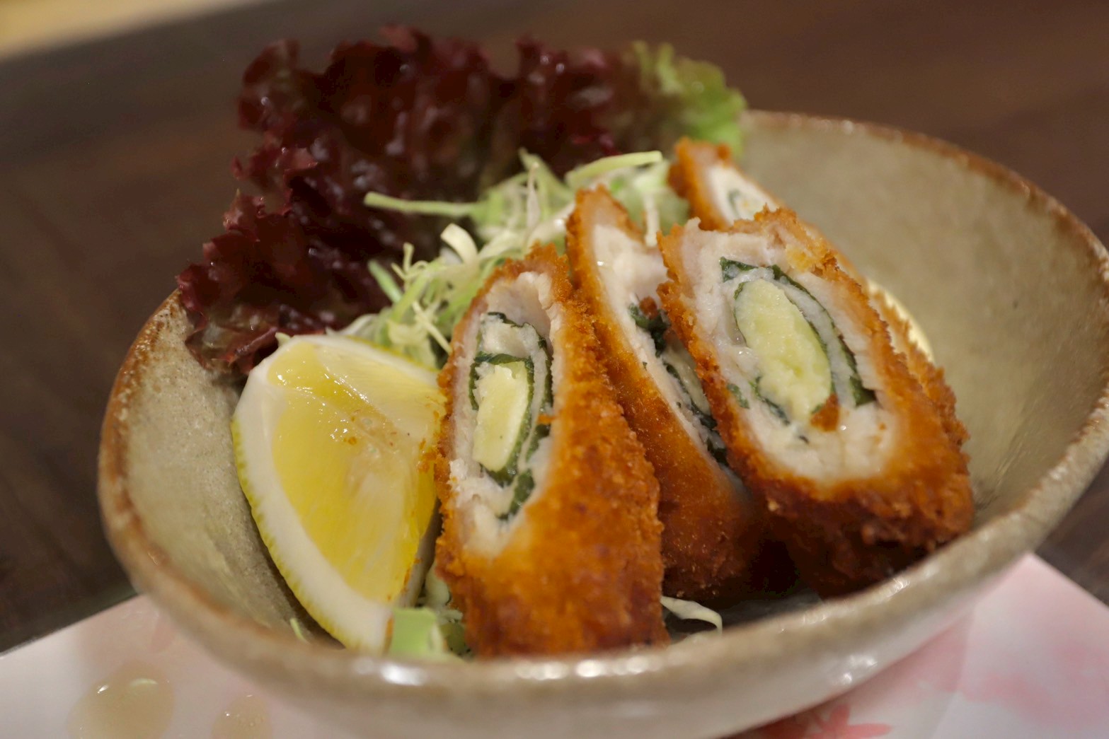 揚げたてザクザク、大葉とささみとチーズのミルフィーユ仕立て。