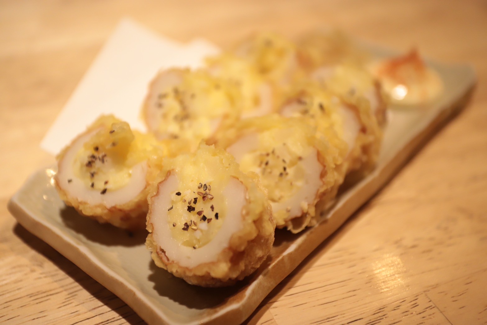 ちくわ天の穴にポテサラ、そして輪切り。