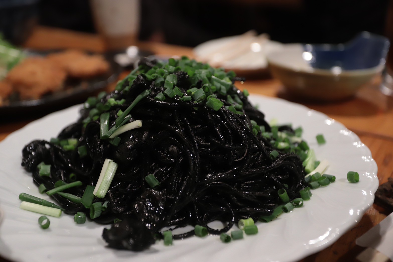 〆はいつもおにぎりなのですが、この日は初のイカスミパスタ!