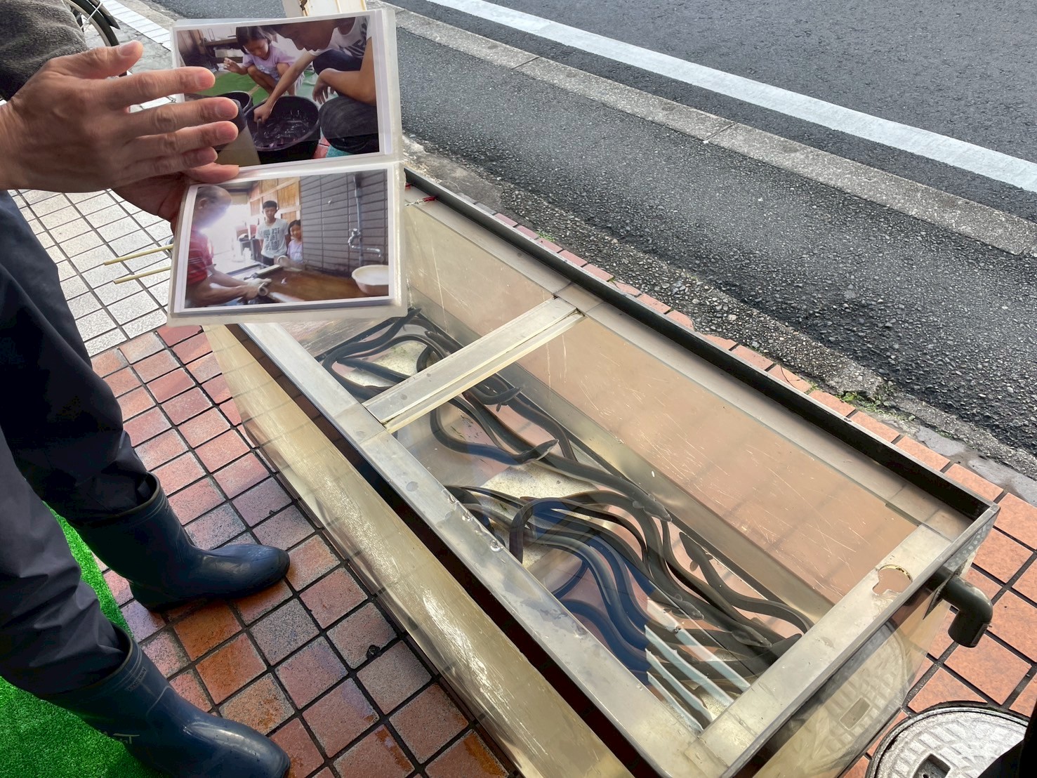 まずは水槽のうなぎを釣り上げるところから。これが意外と難しい!!