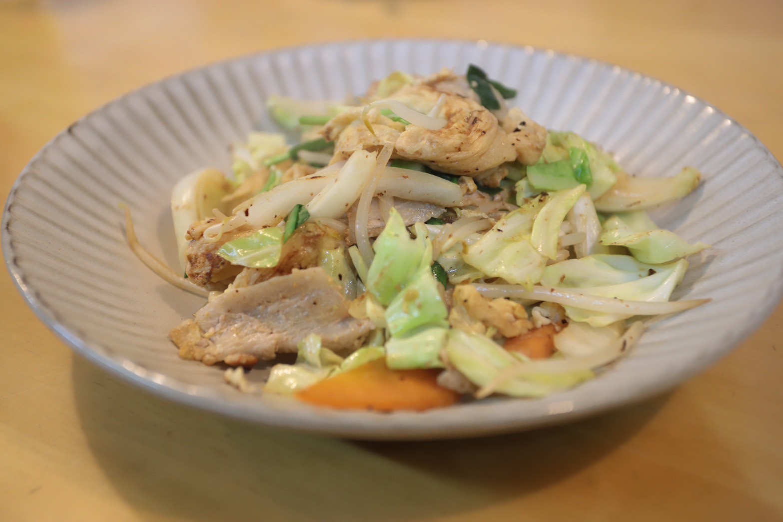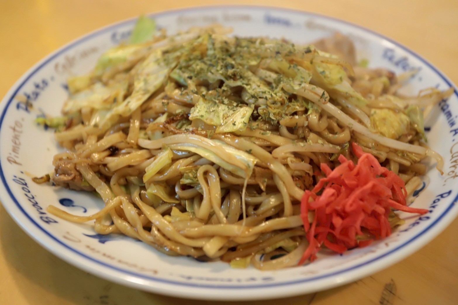 沖縄そばに使われる平打ち麺を使った焼きそば!!