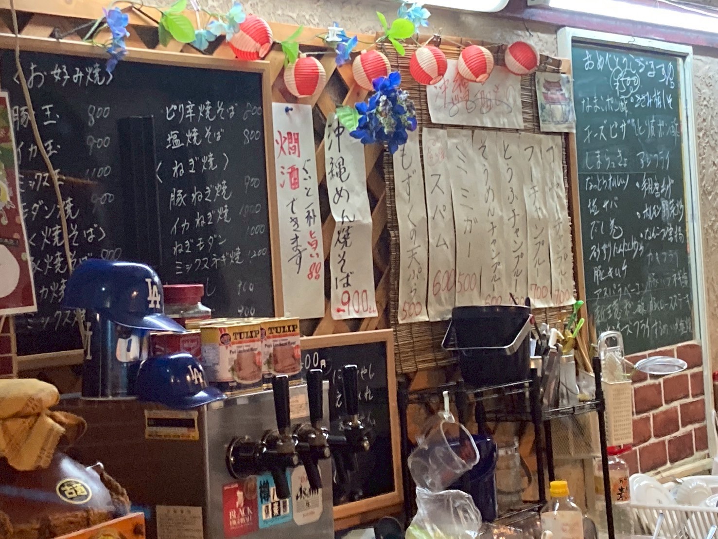 沖縄料理とお好み焼きが楽しめる珍しいスタイルのお店。