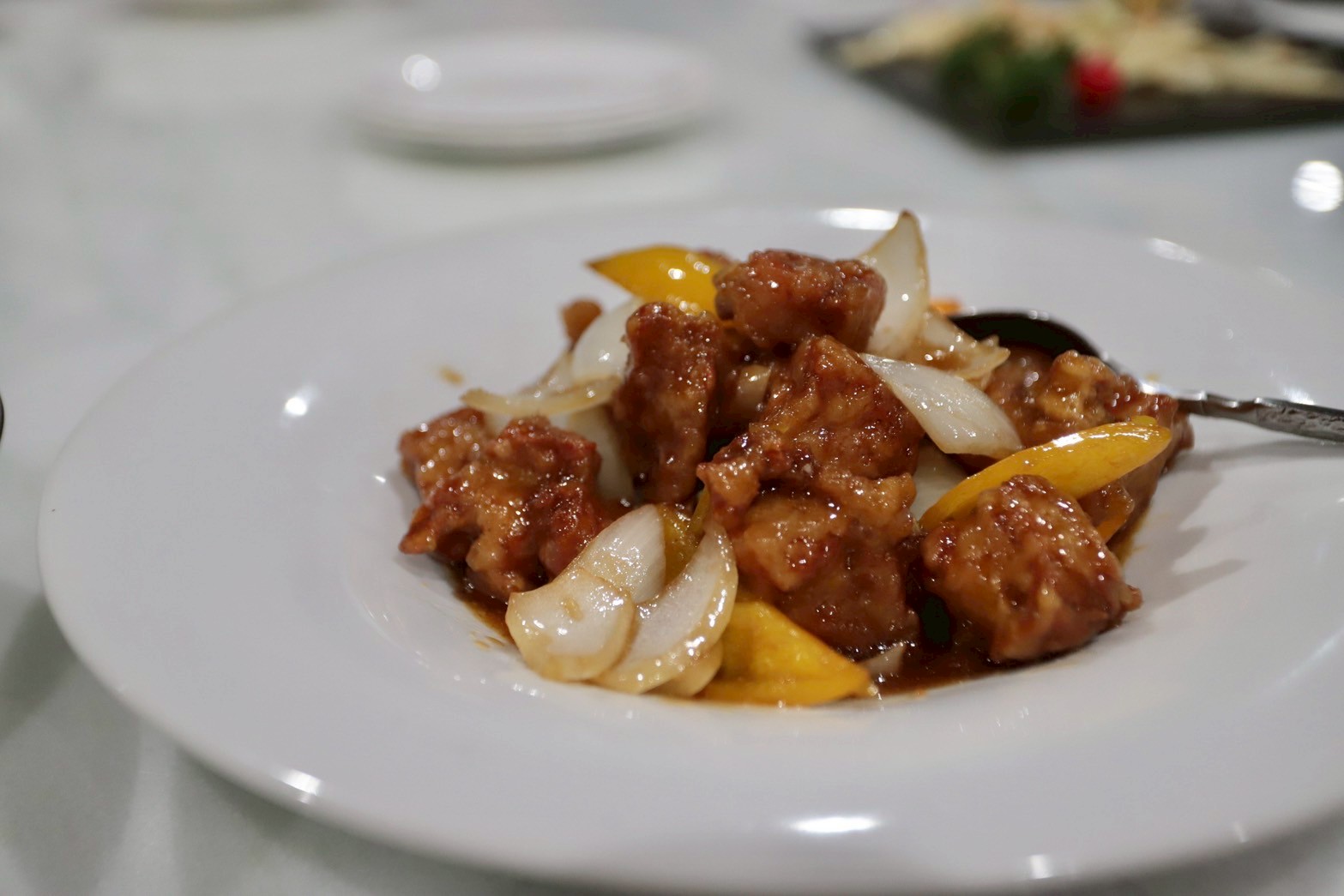 ビジュアルは酢豚ですが、ニンニクの効いた甘酢あんかけで仕上げています!!