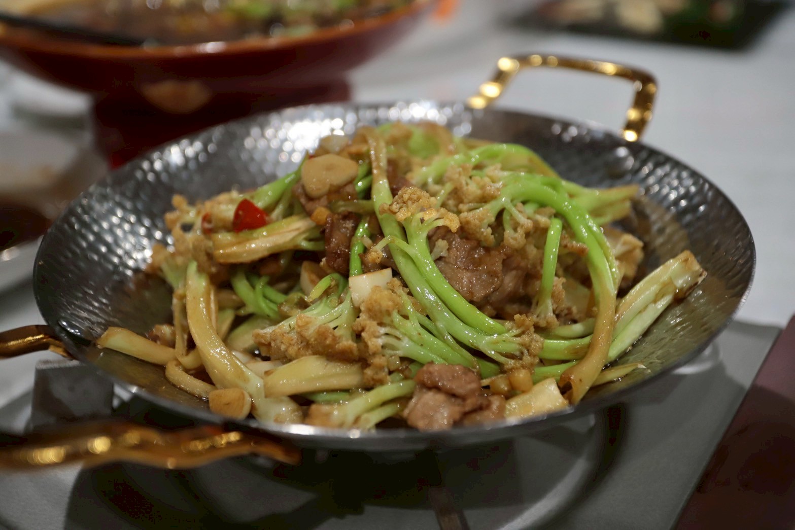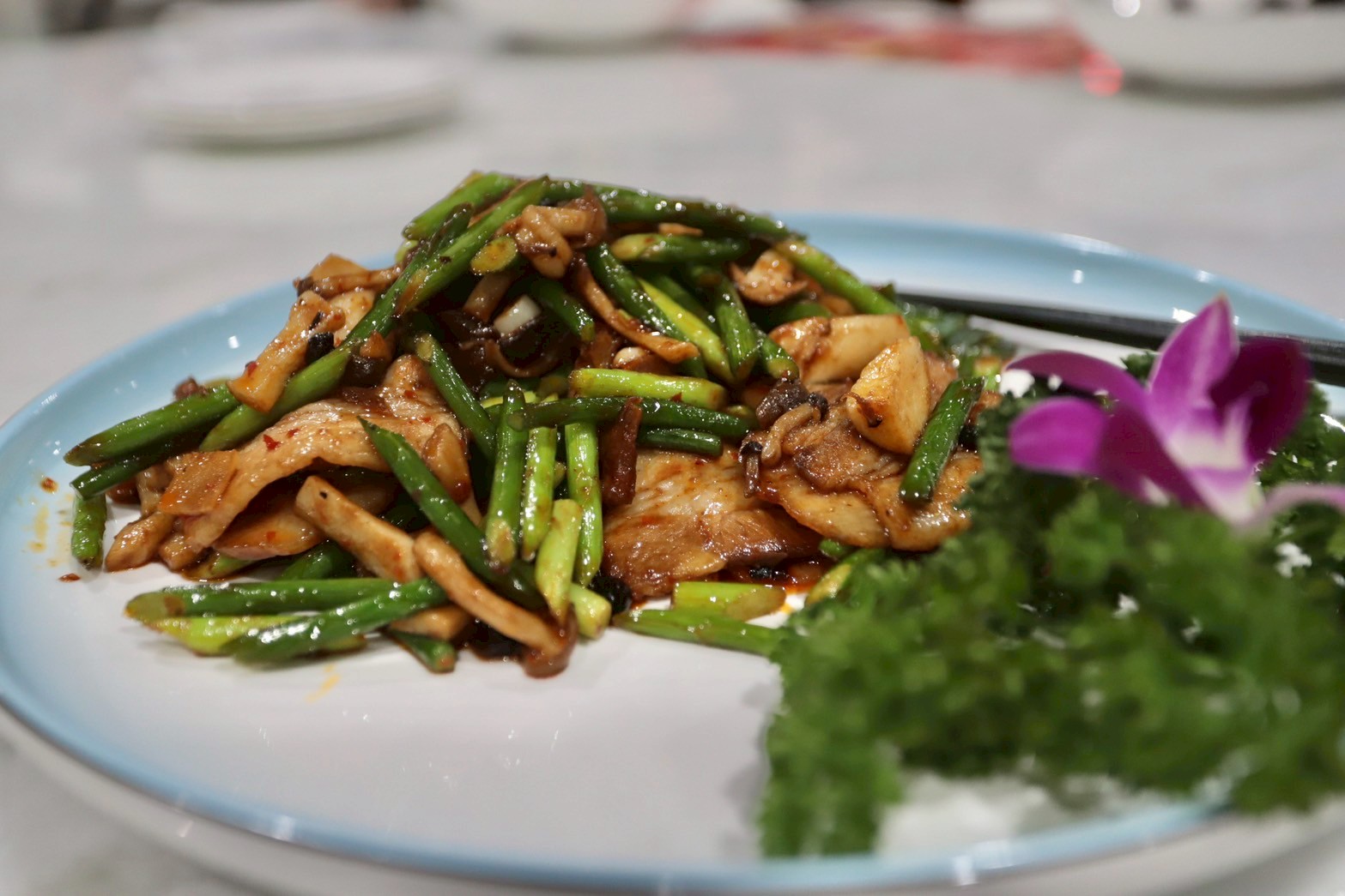 定番の回鍋肉ではなく、ニンニクの芽を使った変わり種。