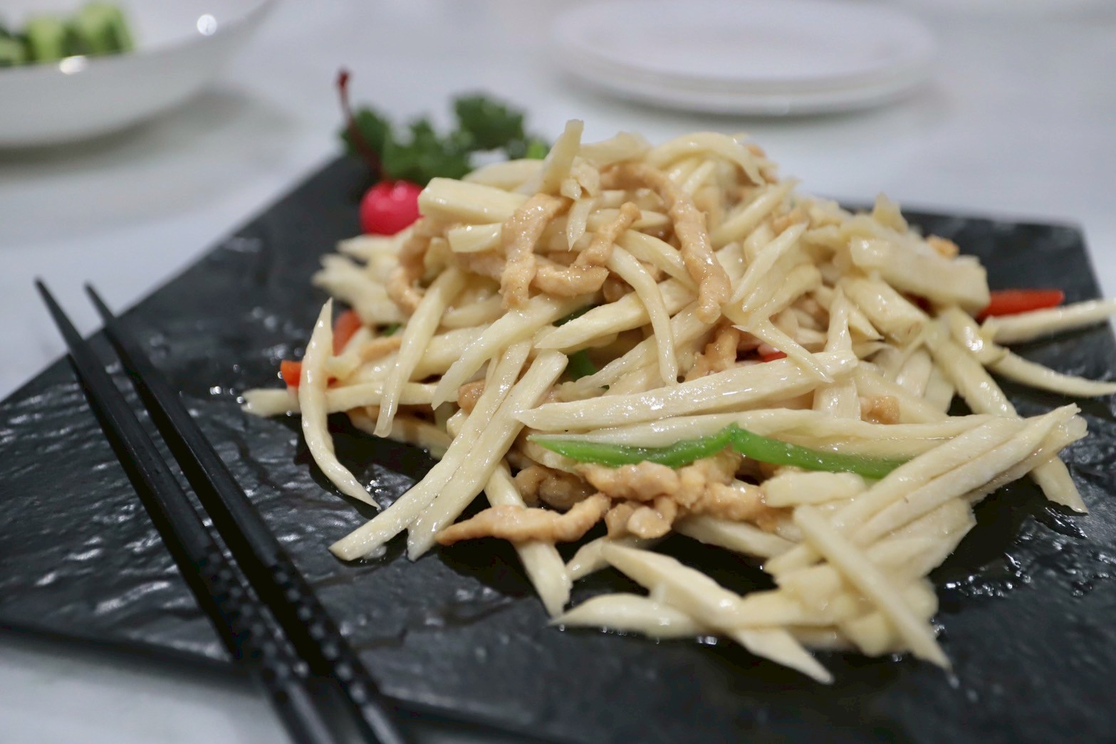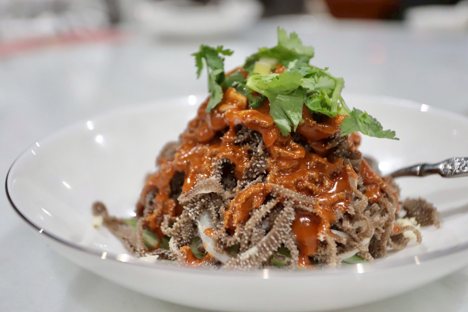 コリコリのクラゲにたっぷり黒酢ダレ。