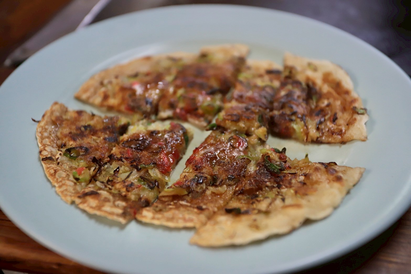 うす焼き生地にキャベツとミンチを乗せて焼き上げたオヤツ的な一品。