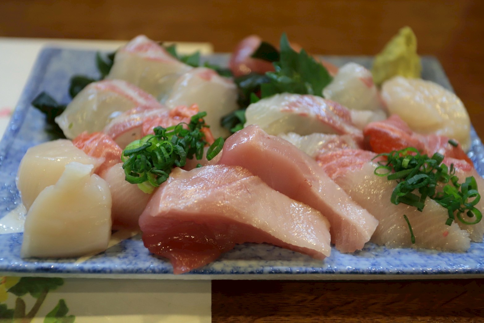 タイ、ひらめ、信州サーモン、ヨコワ、ブリ、ホタテ。