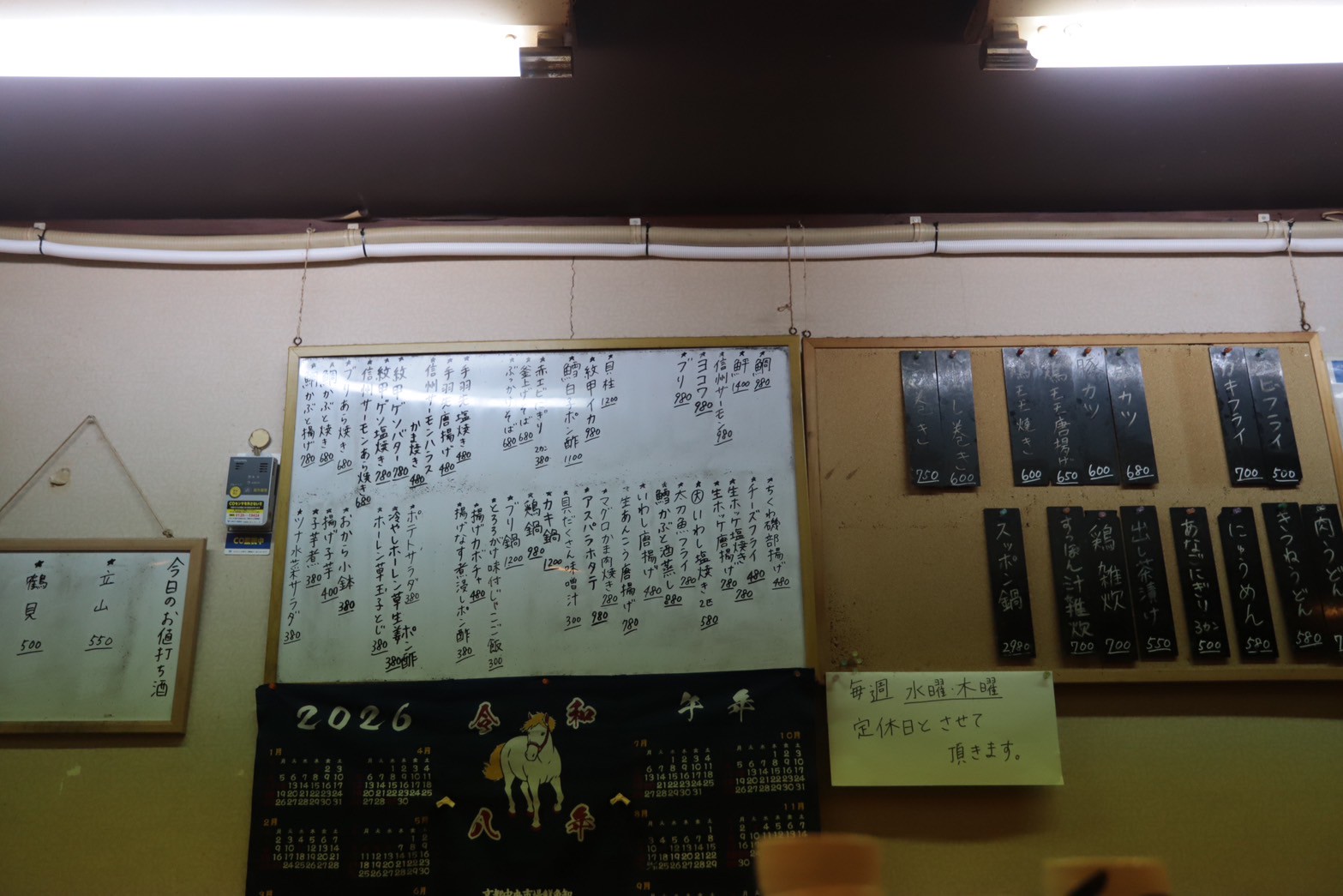 ホワイトボードにはその日のメニューがズラリ。これ以外にも予約の際にリクエストしたら、ご用意していただけたりもします。