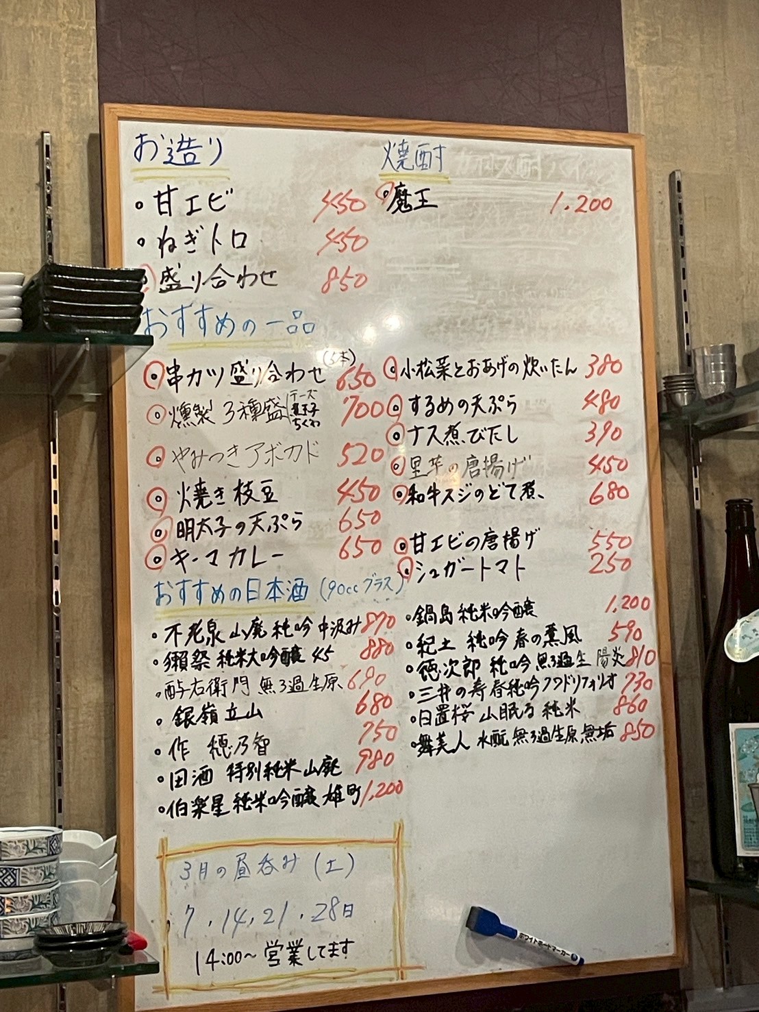 今新さんの魅力は、冷蔵庫に並ぶ珍しい日本酒の数々。
